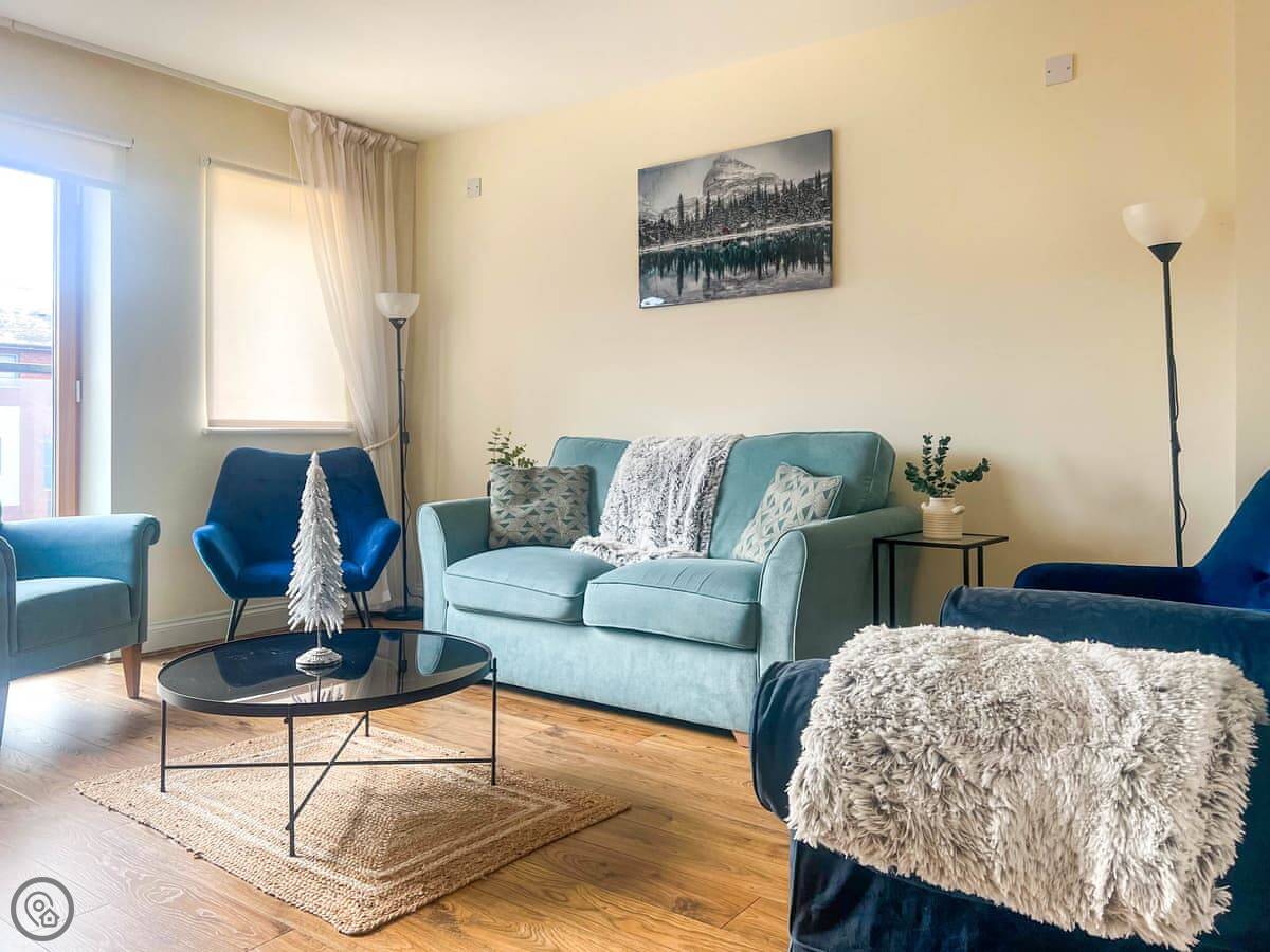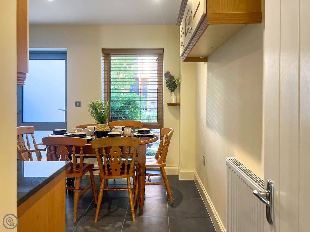 It sleeps seven across four bedrooms. That's two doubles and two singles. There are two bathrooms, one on the first floor and one on the ground floor. It's a 4 Star property, so it's comfortable and well-equipped.