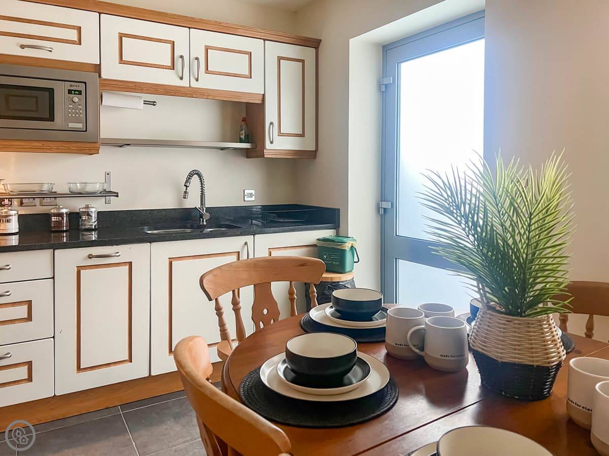 We allow up to two well-behaved dogs. There's a cot, a highchair, and a stairgate if you need them. Bedding and towels are included. There's a washing machine and a dishwasher. WiFi is provided.