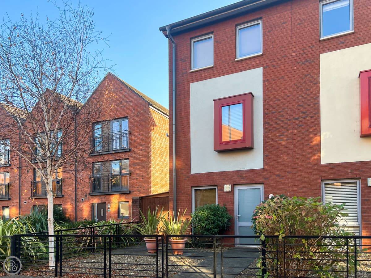 The stairs inside are fairly standard, not steep like an old cottage. You get one private parking space right outside. The garden is a small, paved patio area with a table.