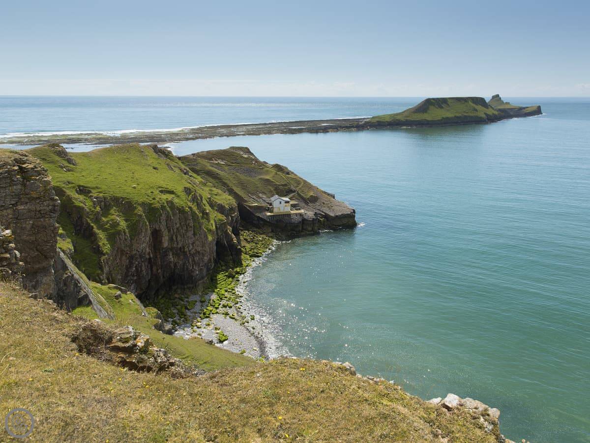 The Mumbles is about ten minutes drive west. It's got a good seafront with cafes and ice cream. For the beaches, you want the Gower. Llangennith is about 40 minutes drive. Rhossili Bay is similar. The views from the headland at Rhossili are really something. The National Trust looks after it. You can sometimes see seals from Worm's Head if the tide's out.