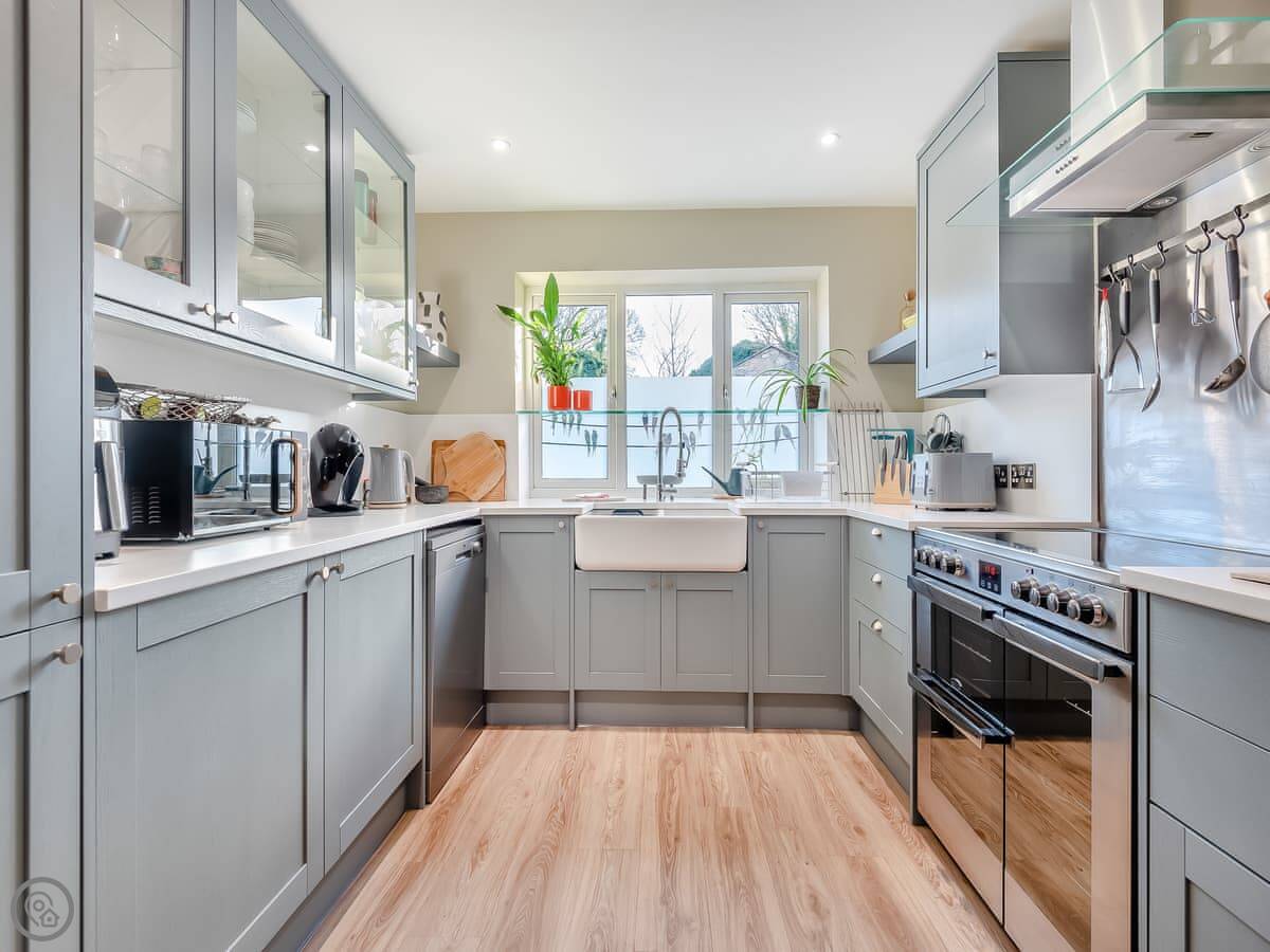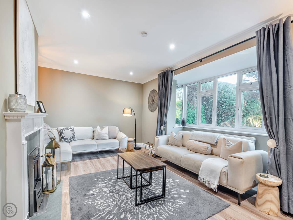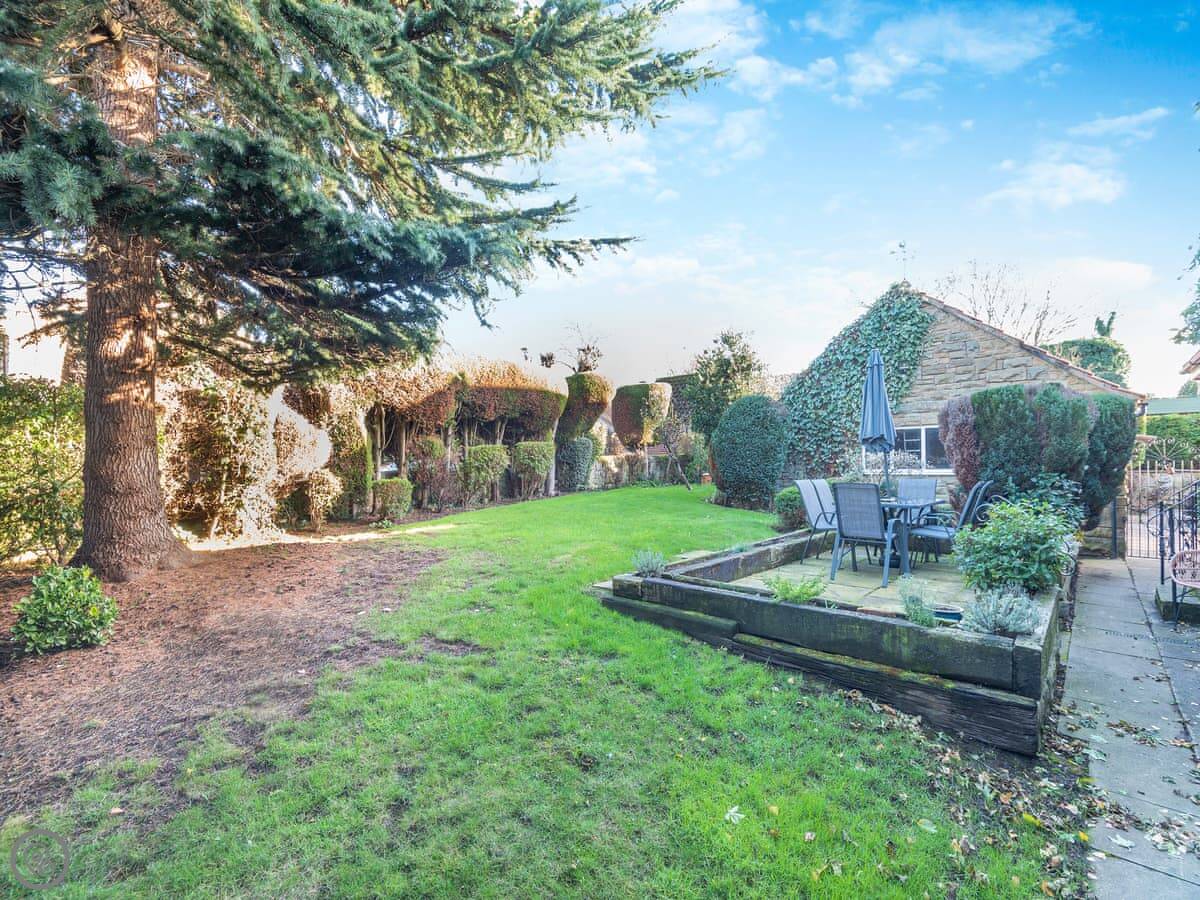 There are two sitting rooms. One has a woodburning stove, which is good for cooler evenings. It means a bigger group can split up if they want to. The garden is enclosed. It's a decent size, with a patio area.