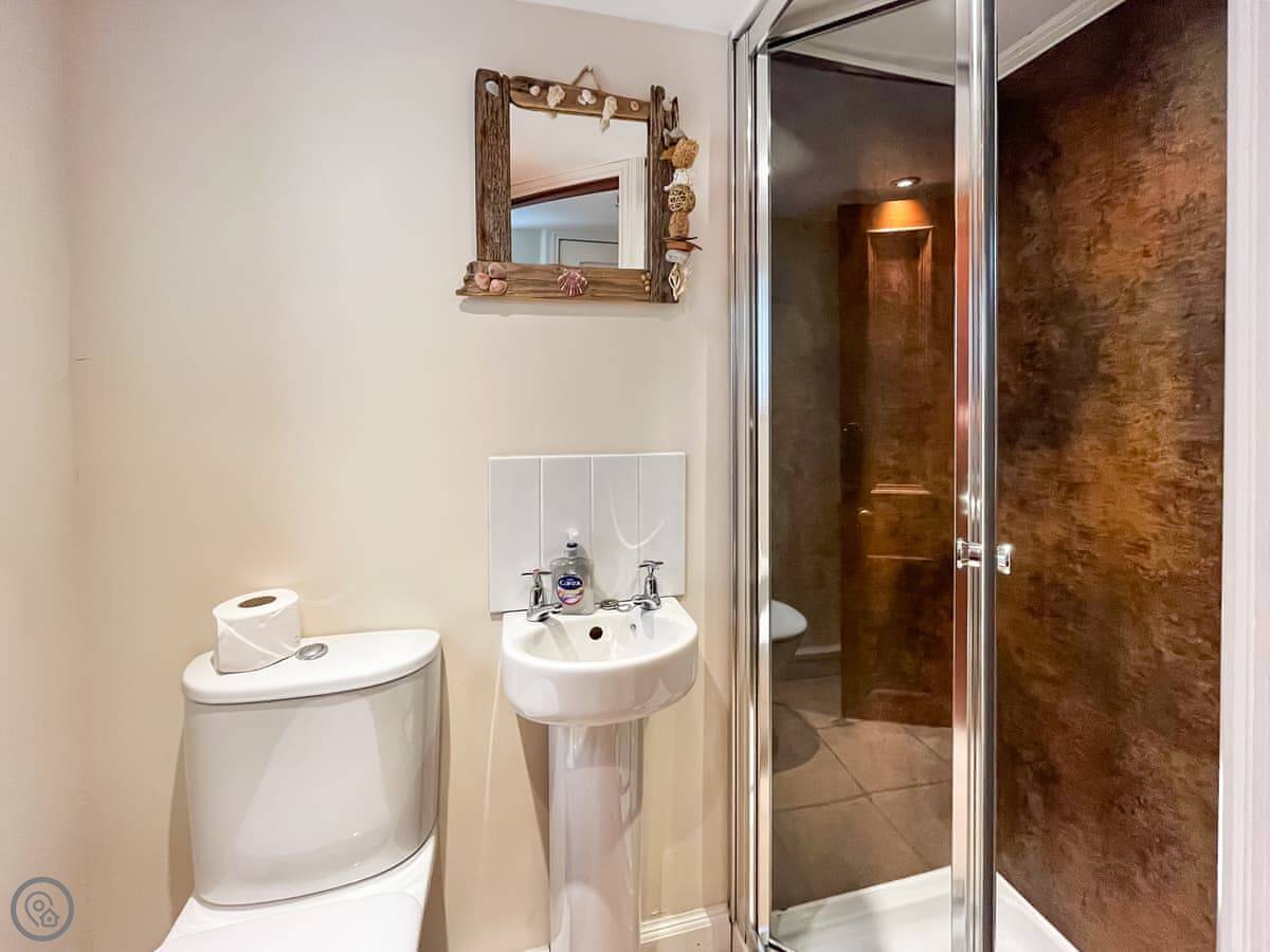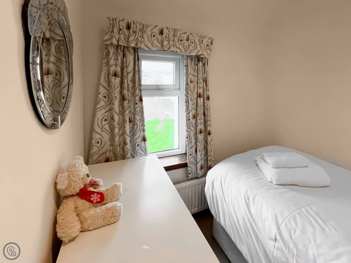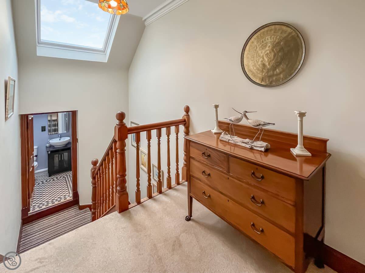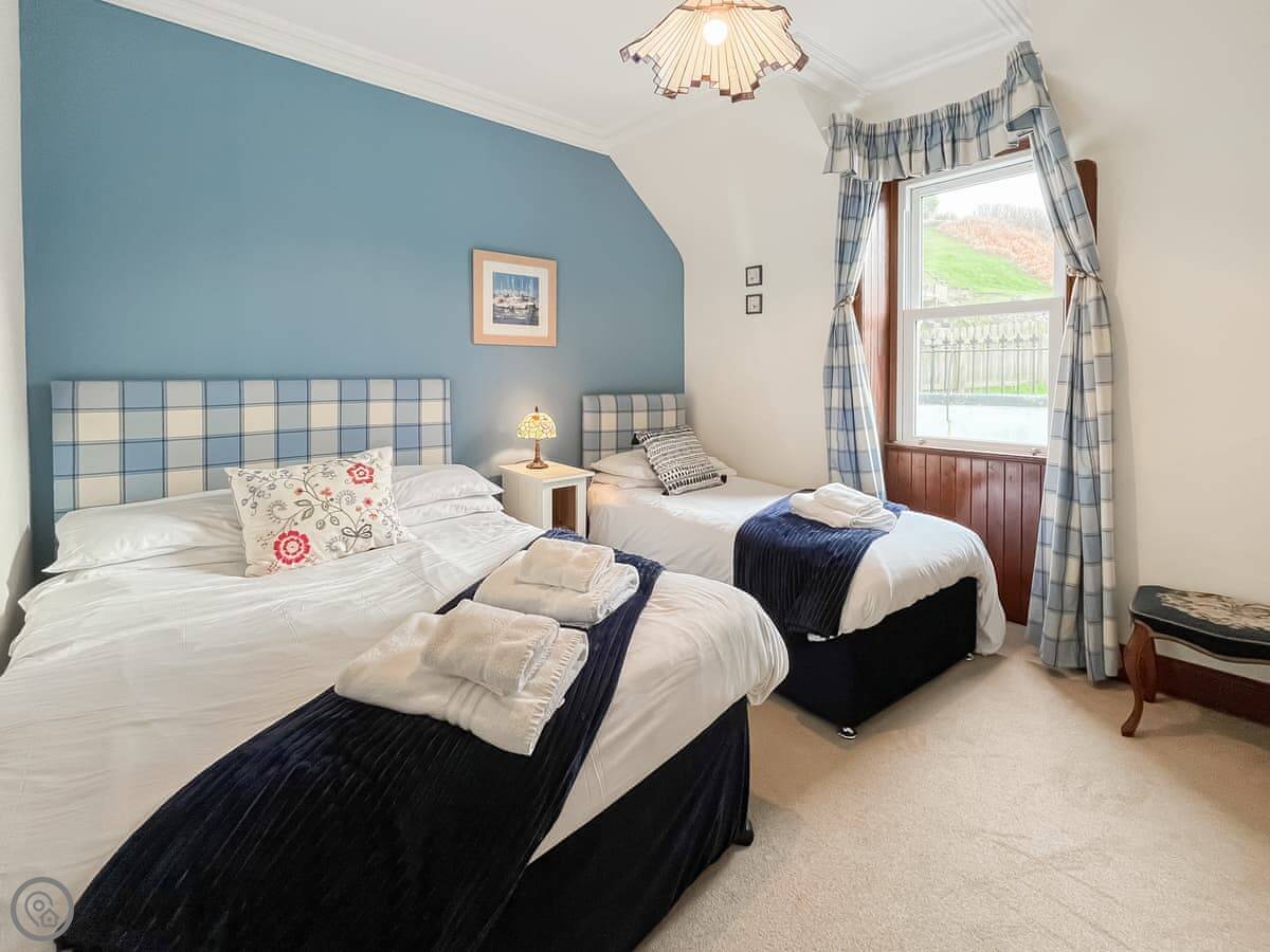 It sleeps six. Three bedrooms, two bathrooms. One is a shower room downstairs. The stairs are fine, normal for a house this age. It's got a 4 Star rating. It's comfortable and well looked after.