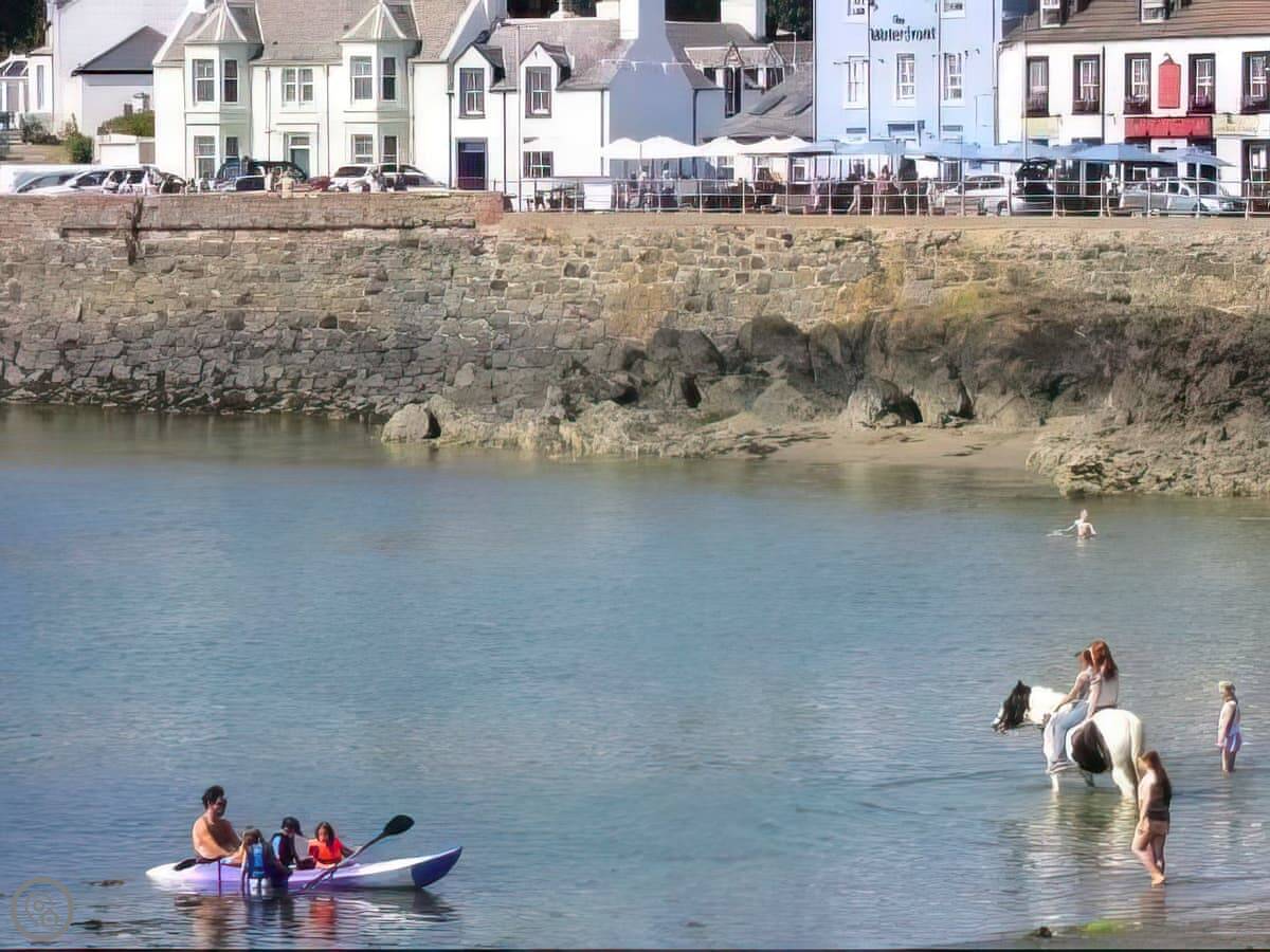 The village has a small sandy beach, a few pubs that do food, and a shop. The Portpatrick Dunskey Golf Club is right there on the cliffs. You can get boat trips from the harbour.