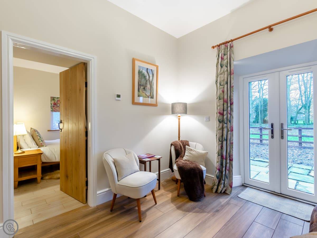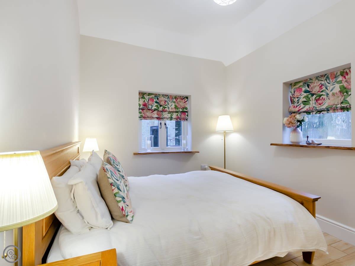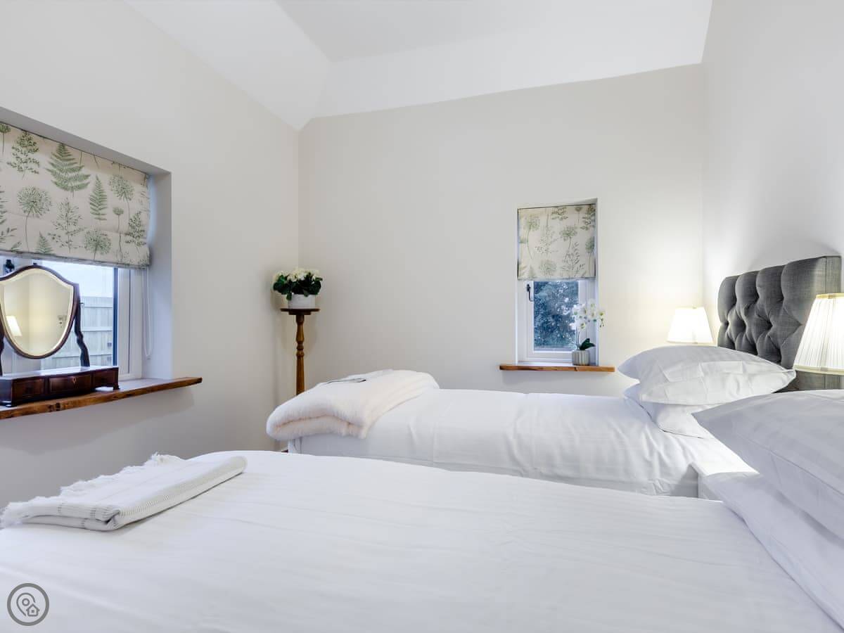 It sleeps four. Two bedrooms and one bathroom. One room has a super king bed, the other has a zip and link, so it can be two singles or a king. They look out over the garden. The bathroom has a deep bath with a rainfall shower.