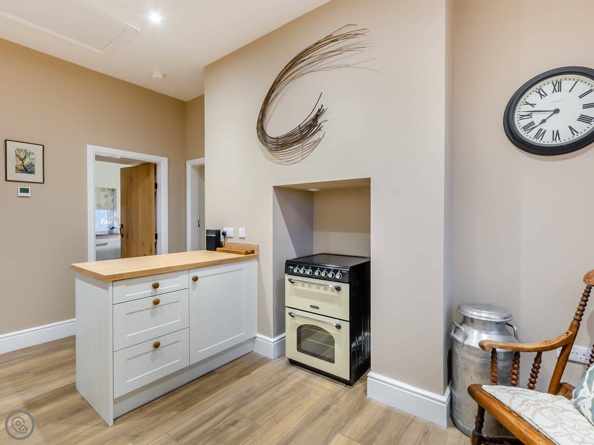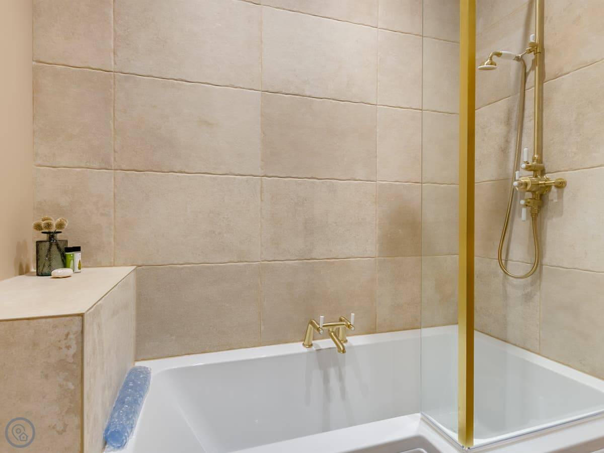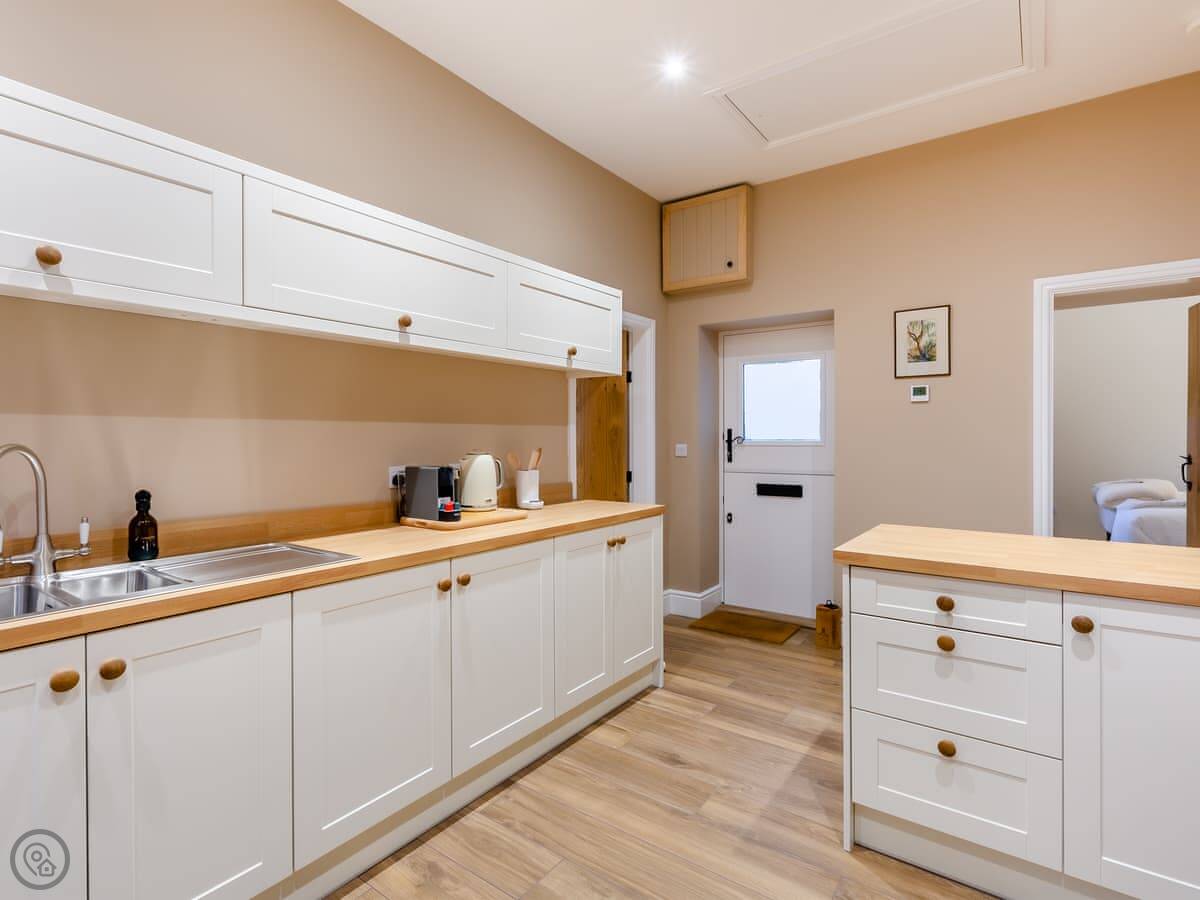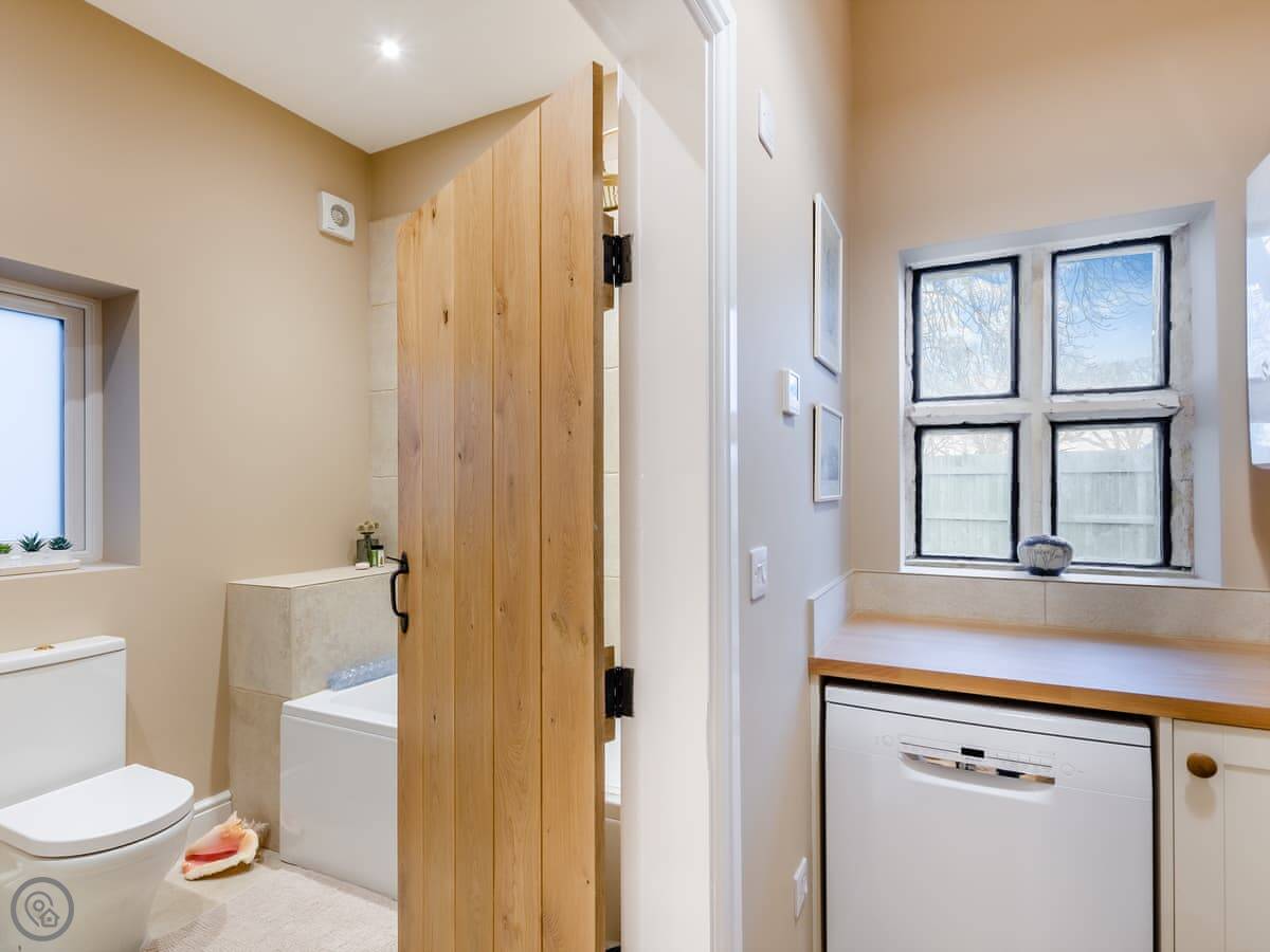 It sleeps four. Two bedrooms and one bathroom. One room has a super king bed, the other has a zip and link, so it can be two singles or a king. They look out over the garden. The bathroom has a deep bath with a rainfall shower.