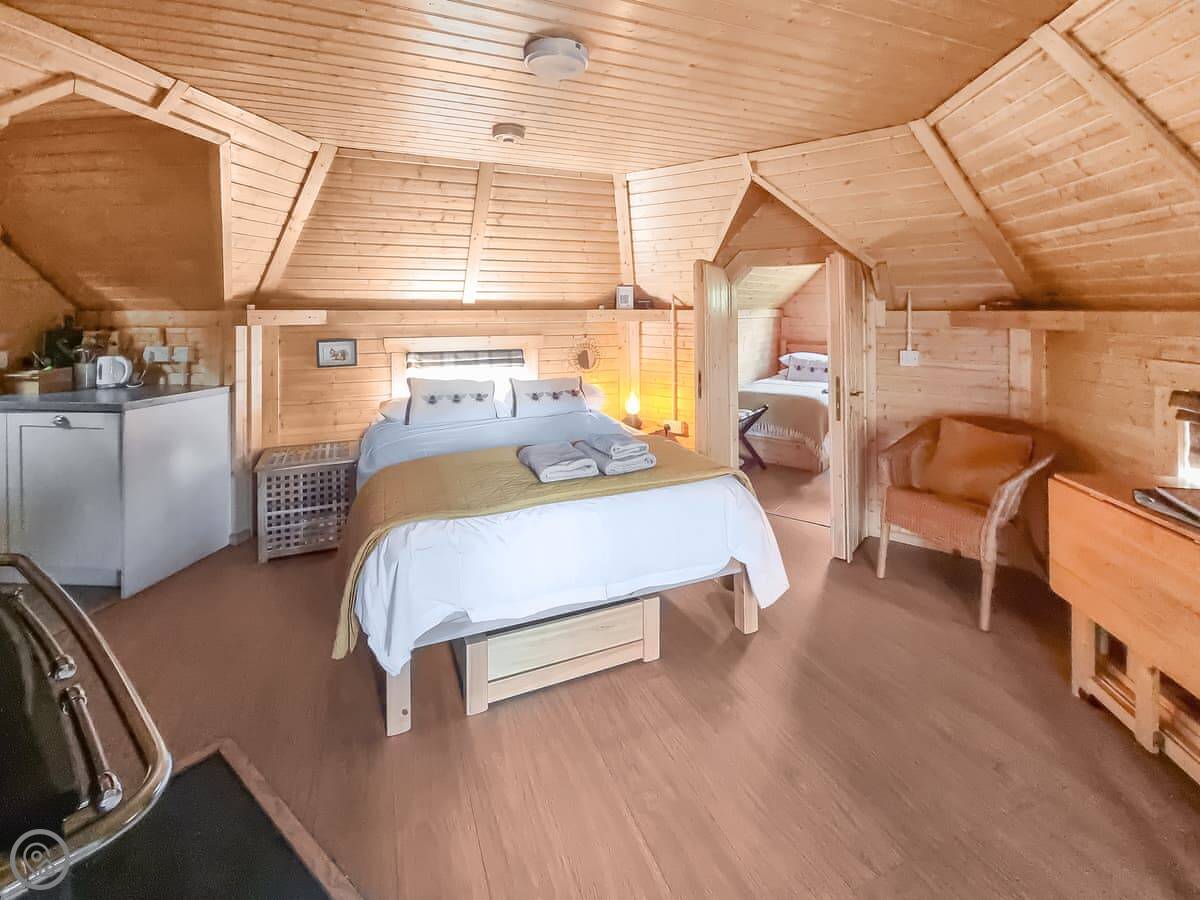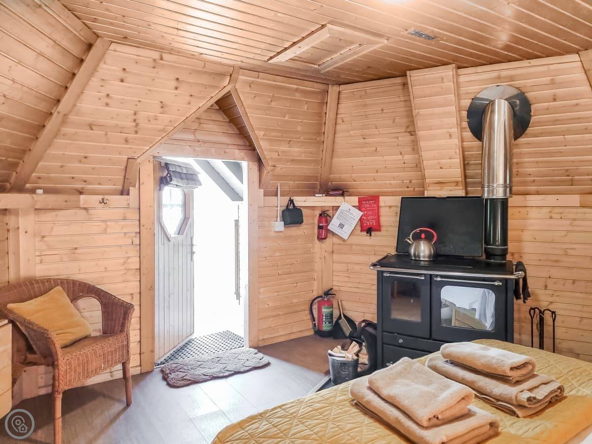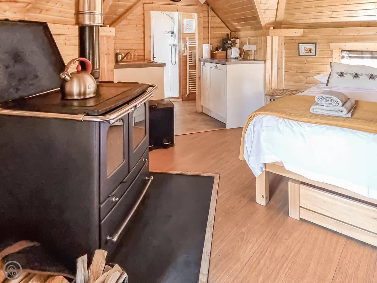 It sleeps two. One bedroom, one bathroom. It's got a 4 Star rating. The main thing is the wood-burning stove. That's your heat and it does make the place very cosy in the evening. There's an indoor shower and toilet, so it's not like the old-fashioned bothies.