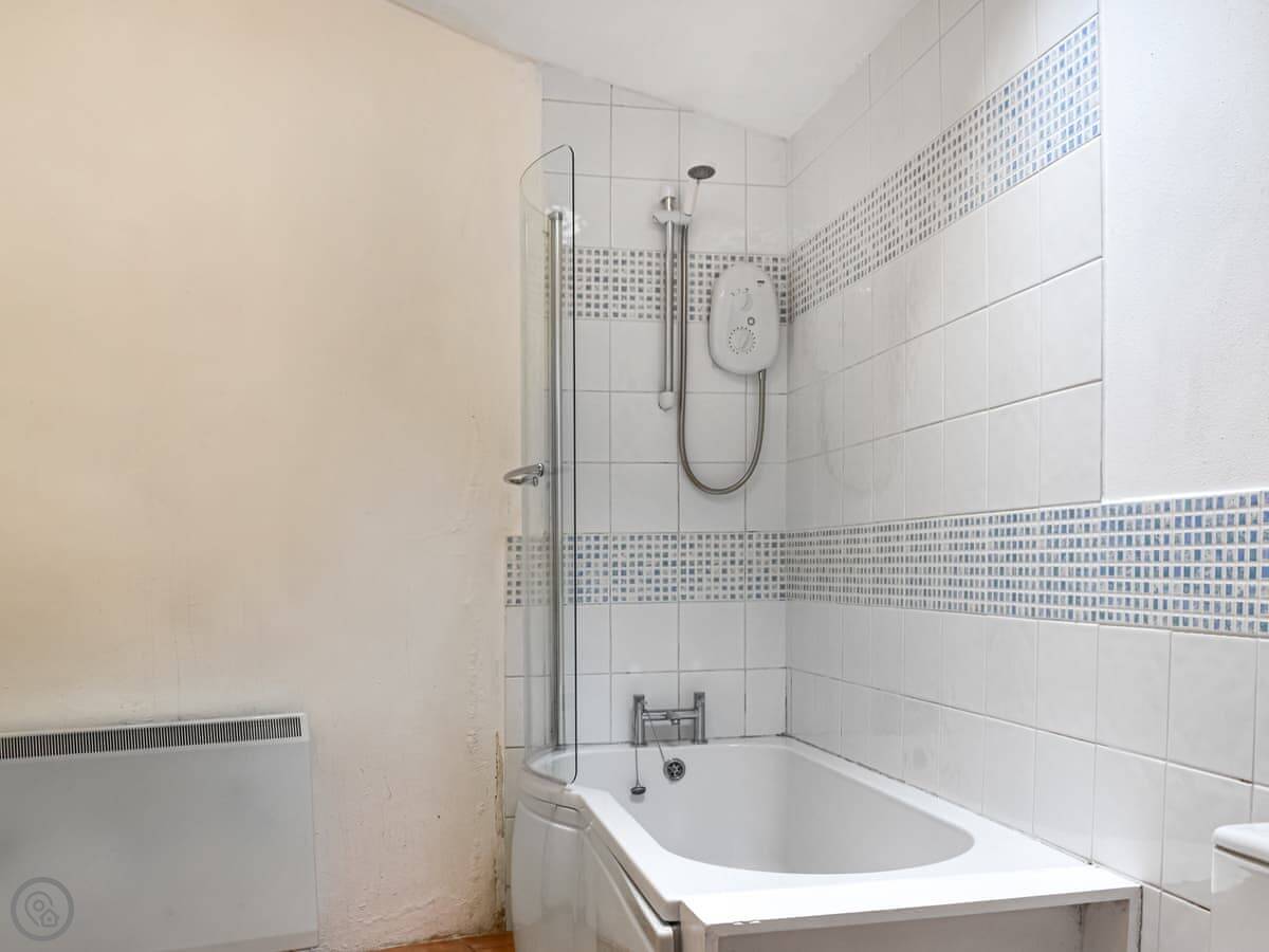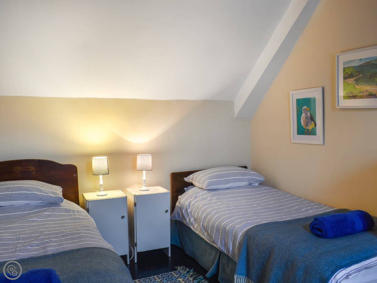 It sleeps six. There are three bedrooms upstairs. The stairs are steep, by the way, and fairly narrow. It's that kind of house. There's one bathroom, with a bath and an electric shower over it.