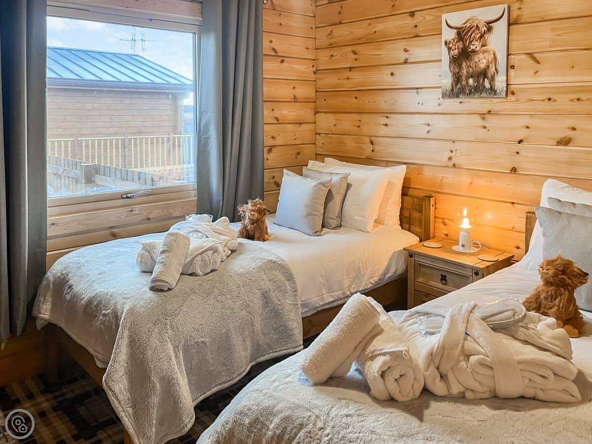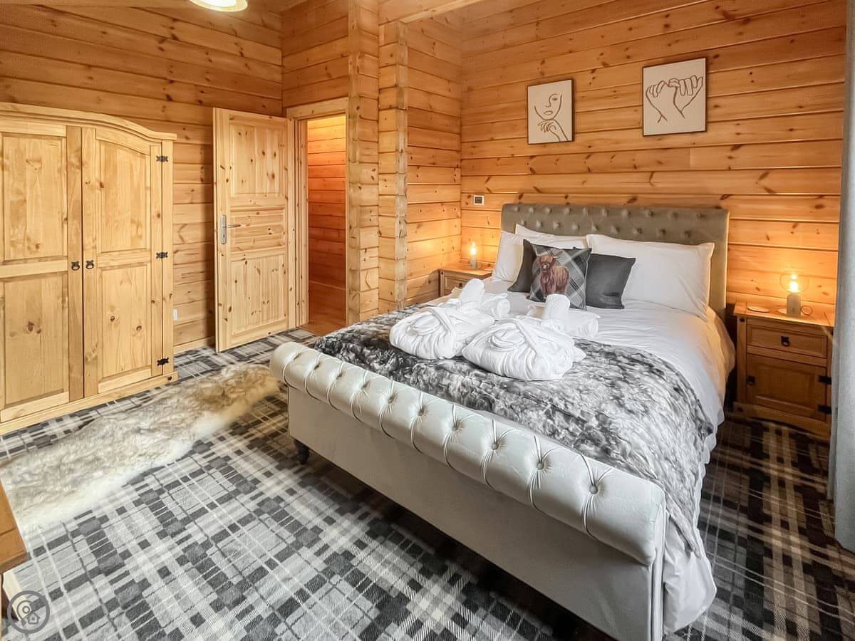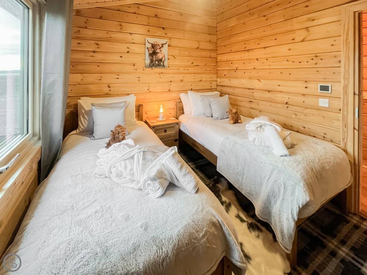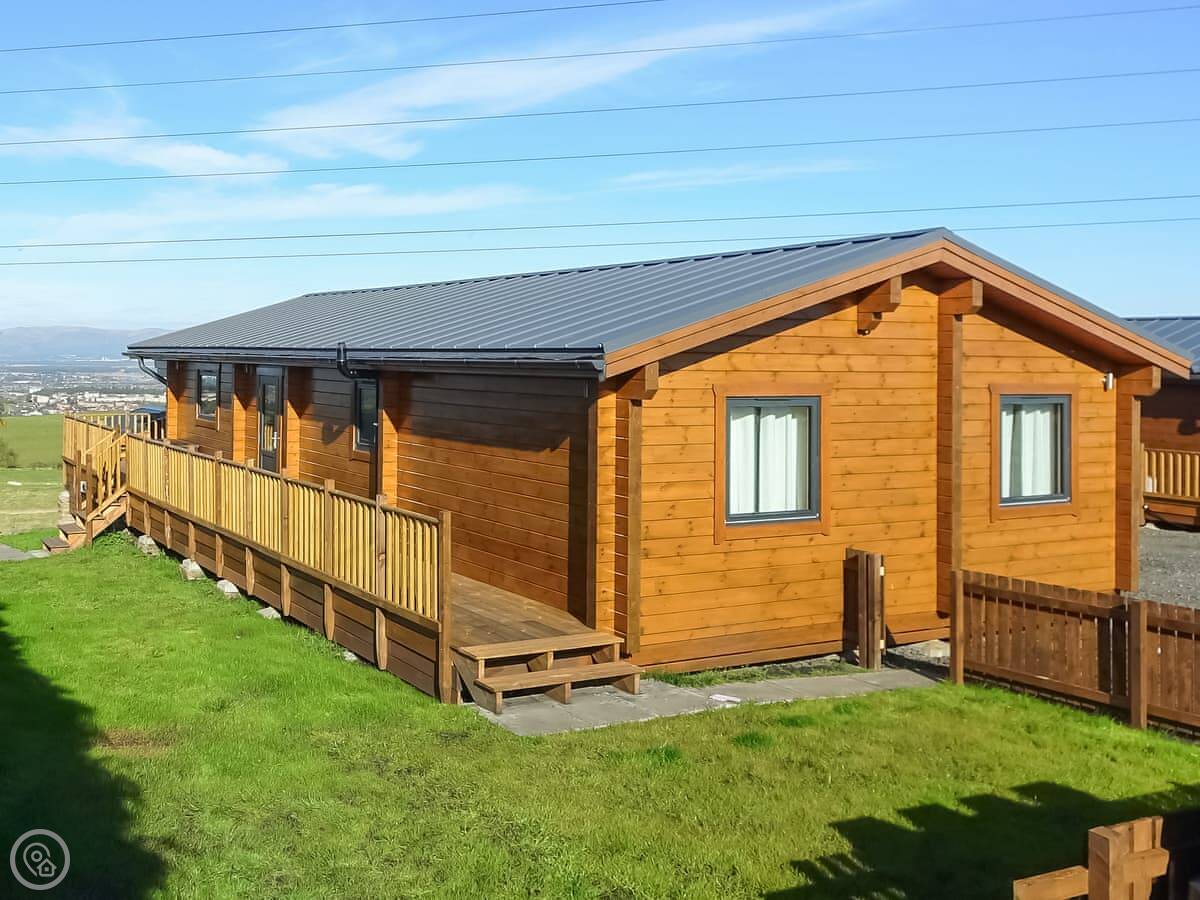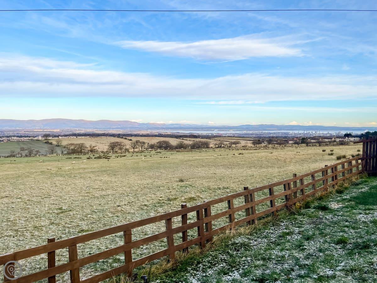 Coo Lodge is in Shieldhill, on the outskirts of Falkirk. It's a detached lodge set in a field. The view looks out over the Forth Valley. You can see right across to Stirling Castle and the bridges.