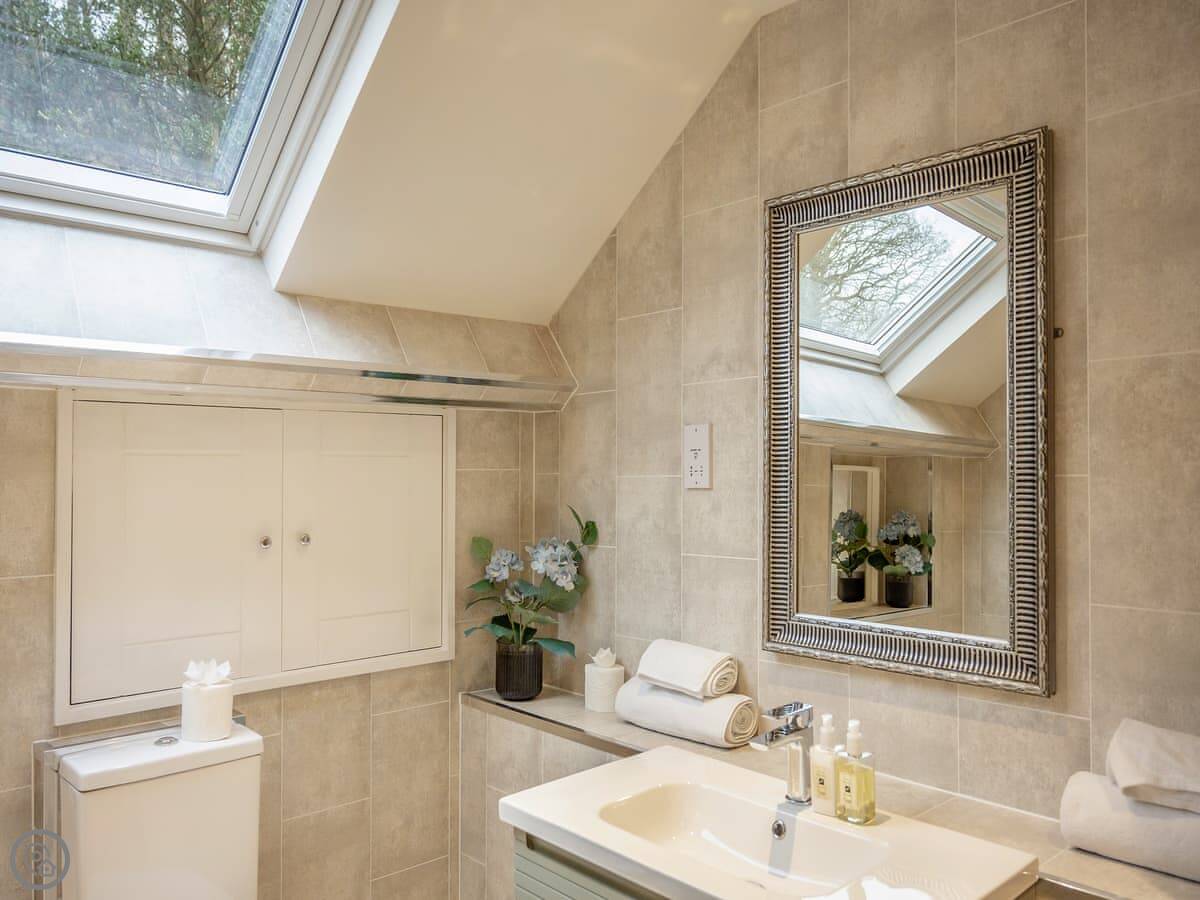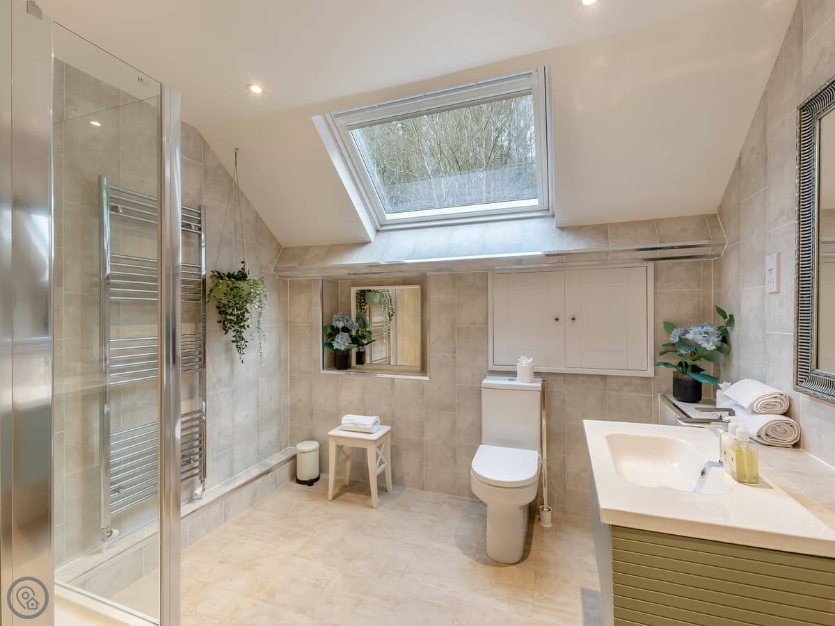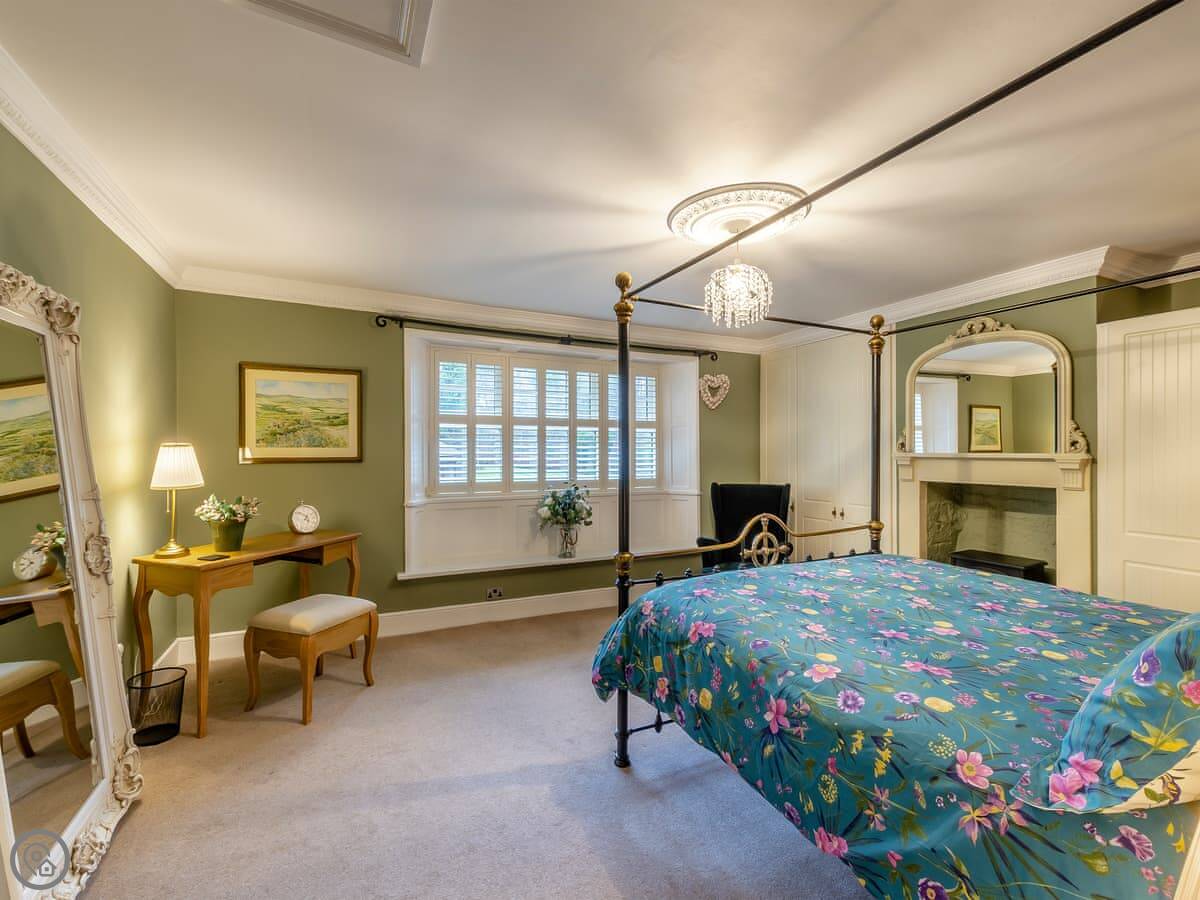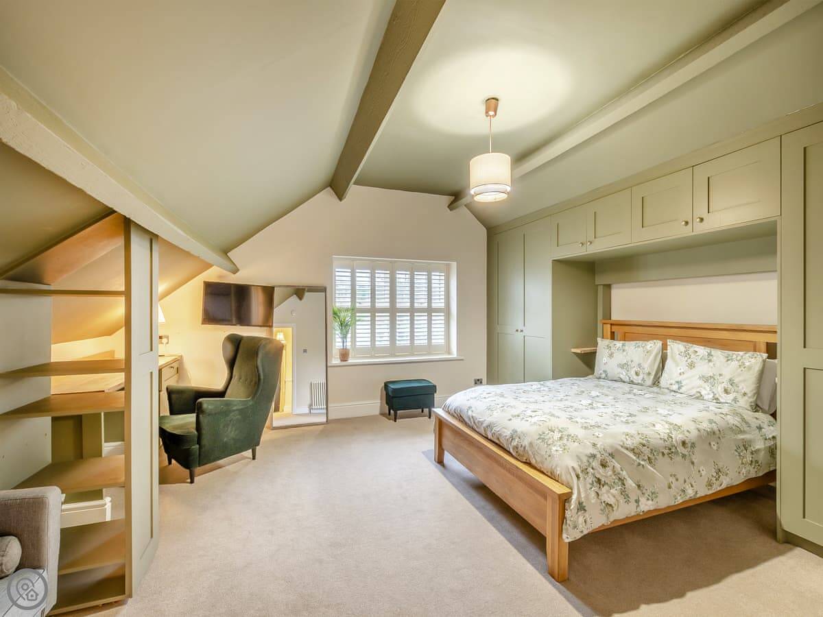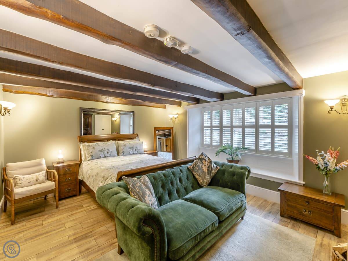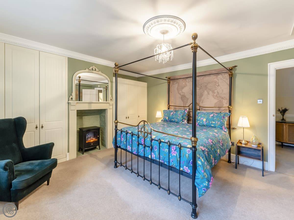 It sleeps eight. Four bedrooms, three bathrooms. Two of the bedrooms are super king size, the other two are king size. One of the king rooms is downstairs. It's got a 5 Star rating, so it's well-equipped and finished to a high standard. Everything's included, like bedding and towels.