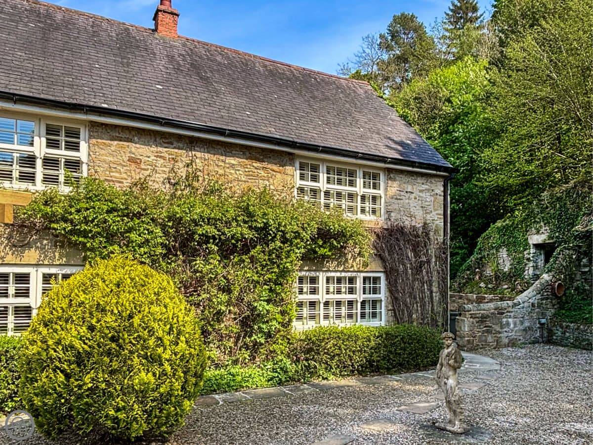 Steelclose House is in Hamsterley Mill, County Durham. It's a detached house on seven acres of its own land. The bit you get is enclosed, so it's private. The main garden is lawn and it's quite sunny. There's a river at the bottom of the land, just so you know. It's not fenced, so kids need watching.