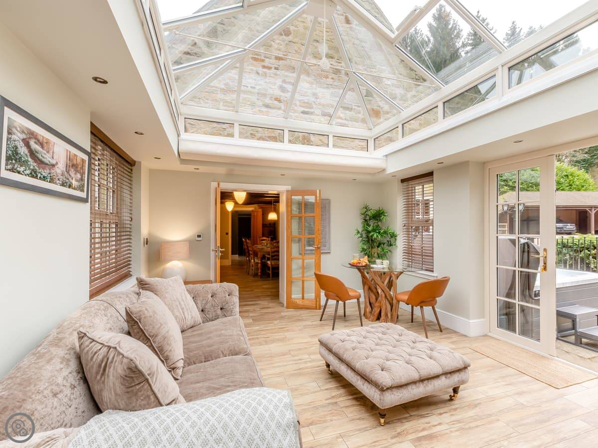The layout is a bit different. There's a main living room, an orangery, another living room, and a separate dining room. The kitchen is open-plan. It's a big space, so you're not all on top of each other. It's a 5 Star place, so it's well kept and has everything you'd need.