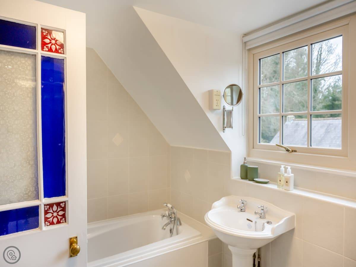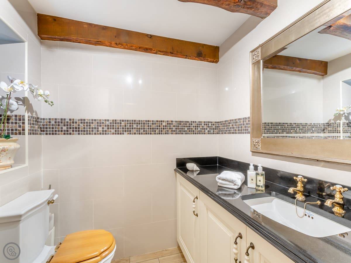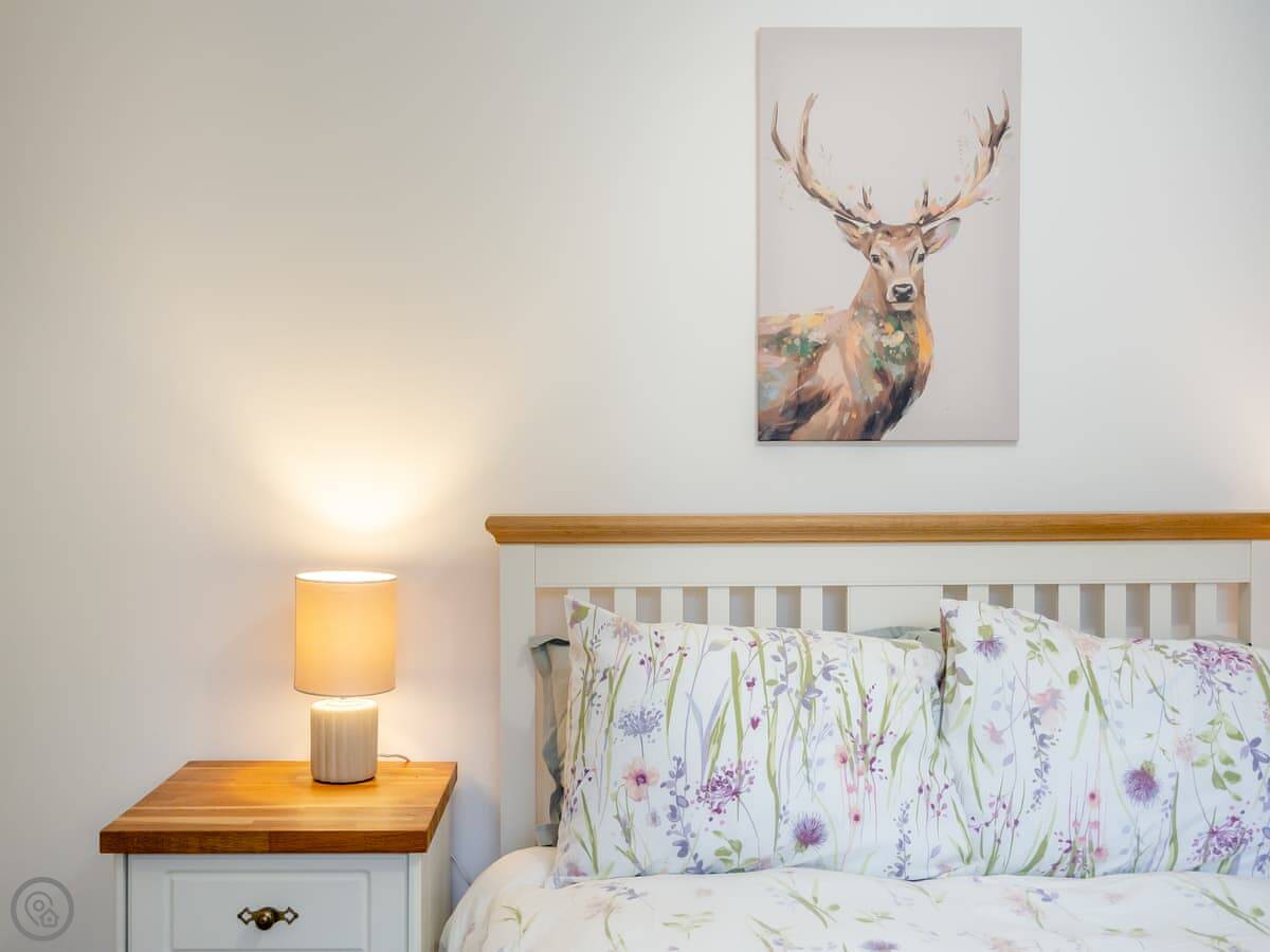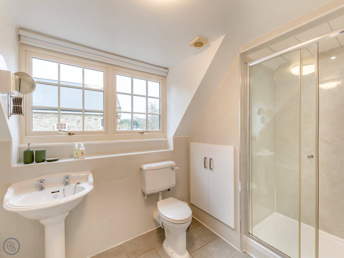 It sleeps six people in two bedrooms. Both rooms have king sized beds. There's a sofa bed in one of the sitting rooms as well. One family bathroom with a bath and a separate shower. There's also a downstairs toilet.