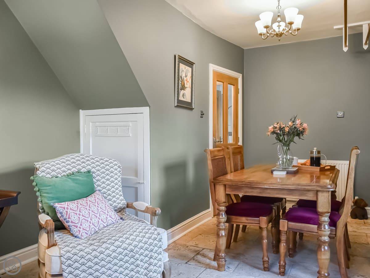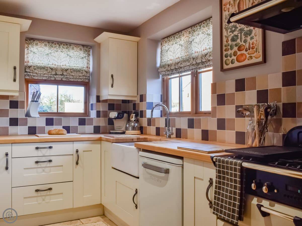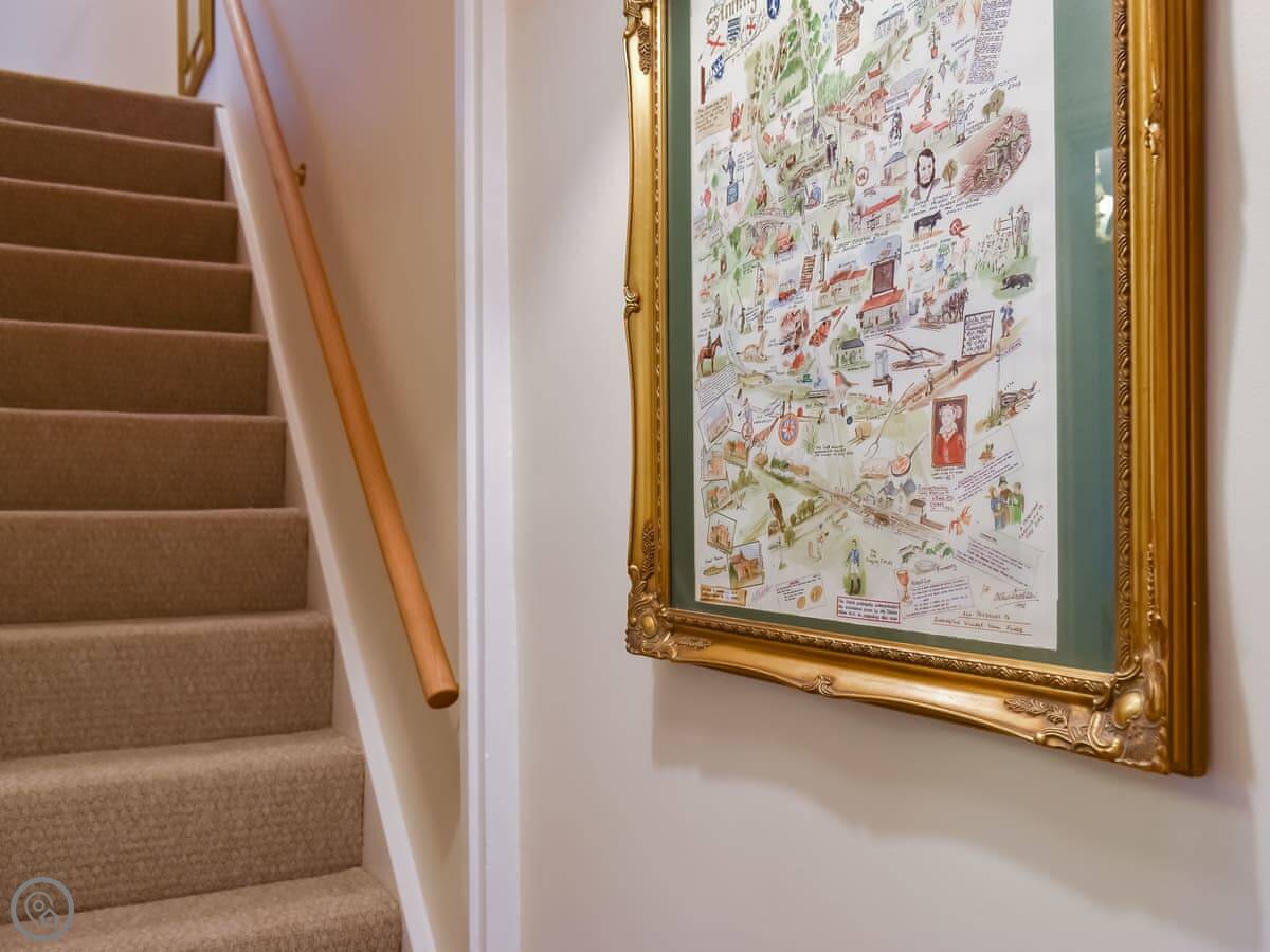 The kitchen has a big range cooker. The living room has a wood burner. We supply the wood. The stairs are fine, just normal cottage stairs. There's a private garden out the back with seating.