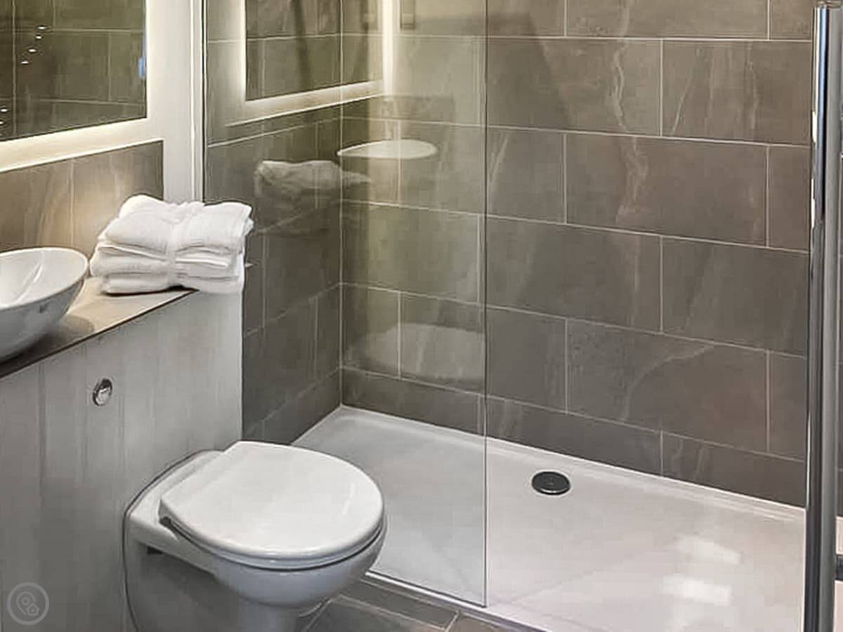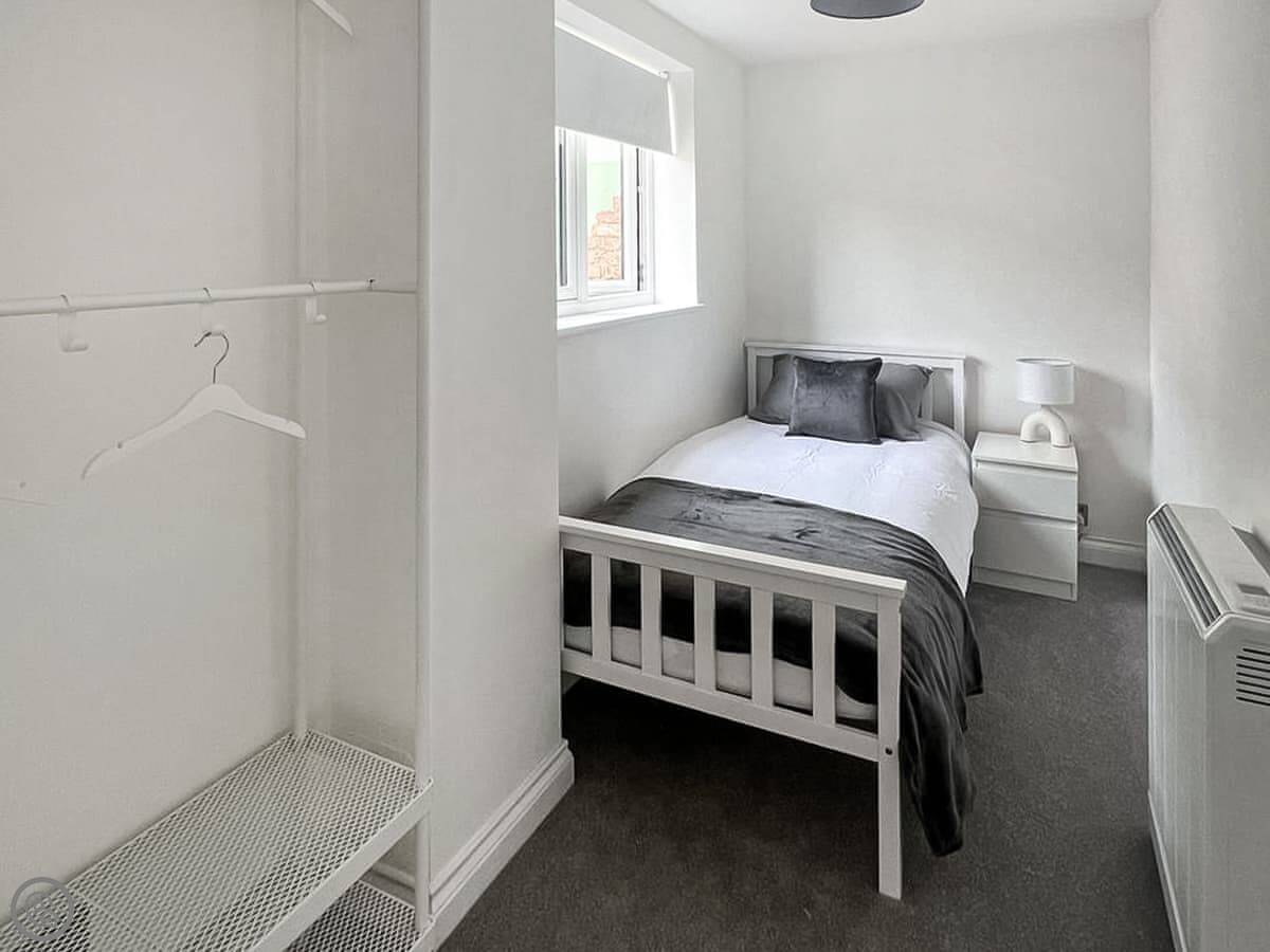 It sleeps four, in three bedrooms. There’s a single and a bathroom on the ground floor which is handy. Upstairs there’s a king size bedroom with a shower ensuite and a twin room next to it. One of the beds in the twin folds away against the wall if you need the floor space. It’s got a 4 Star rating so it’s a nice standard, well decorated.