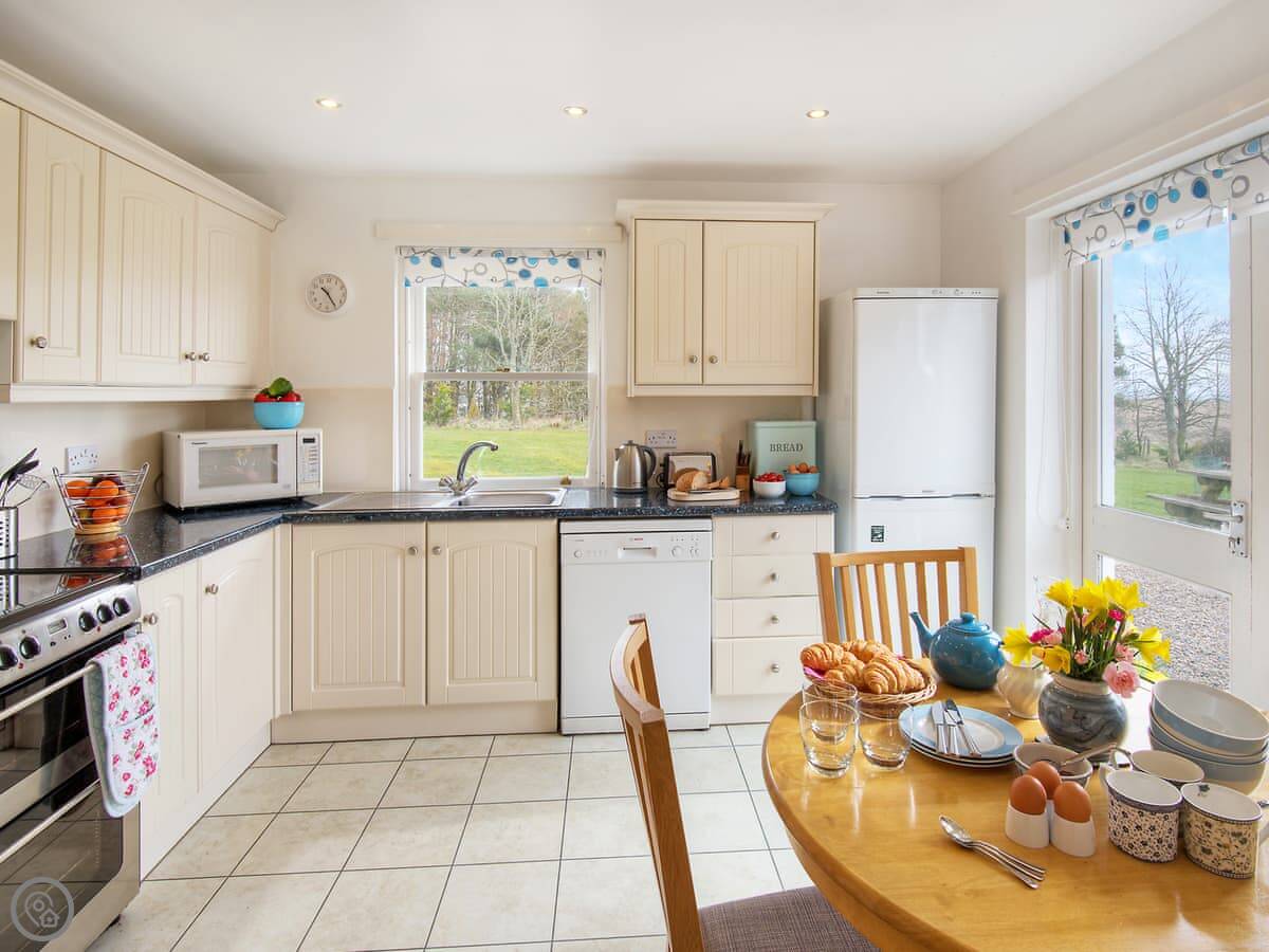 It’s a solid 4 Star holiday home. That means it’s comfortable and well-equipped, but not a show home. You’ve got a woodburning stove in the sitting room, a dishwasher and a washing machine. There's a TV and WiFi included. The parking is on site.