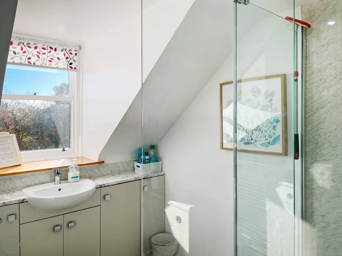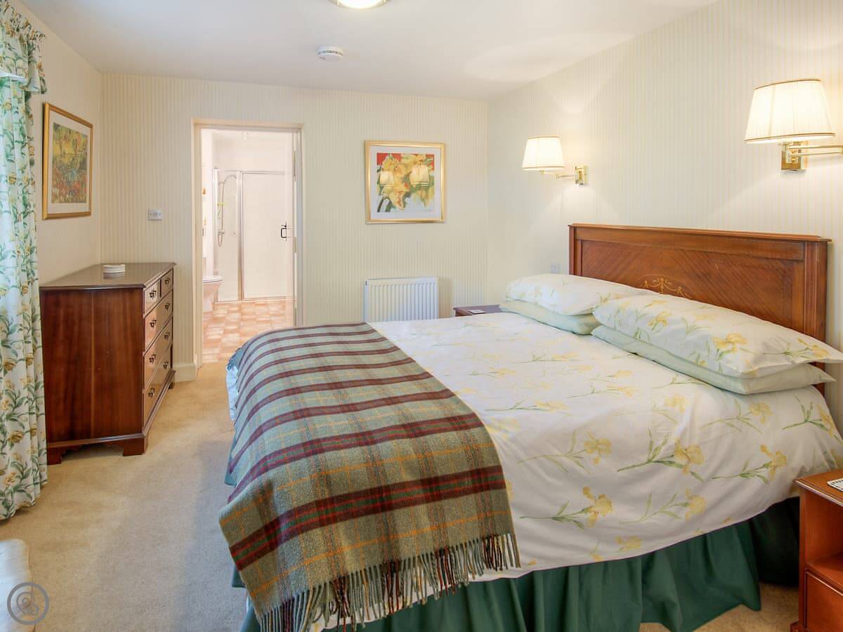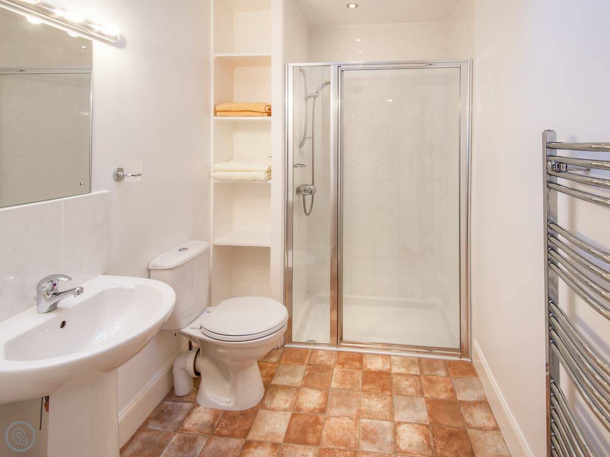 The cottage sleeps up to six people in three bedrooms. Two of those are upstairs with a family bathroom. Downstairs on the ground floor there's a double bedroom with an en-suite shower room. That can be useful.