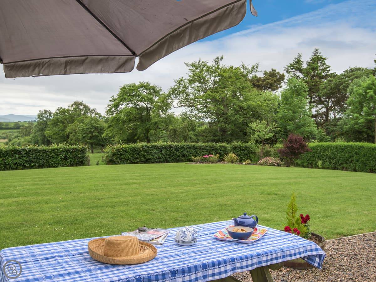 The garden is yours to use and it looks west over fields and hills, so you get the sunsets.