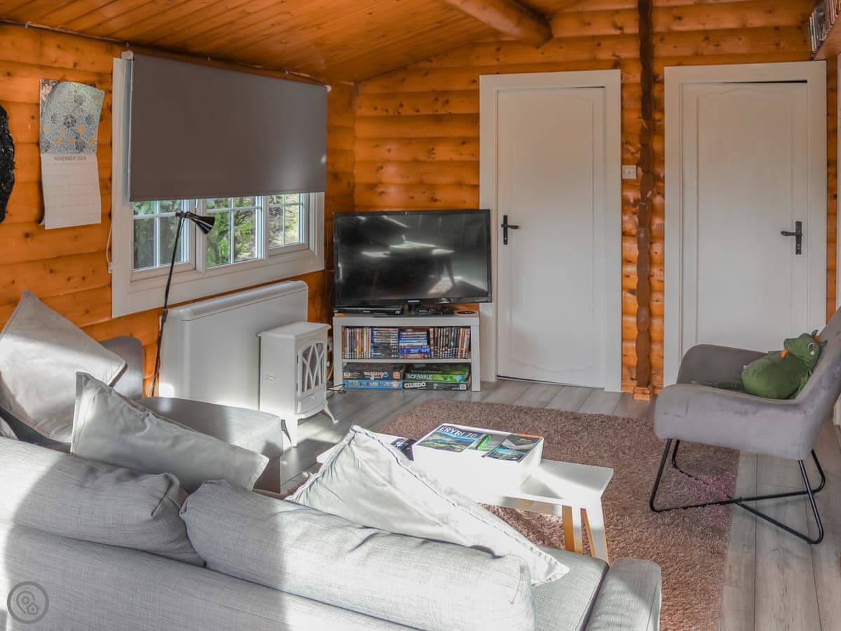 Babbling Brook Lodge is a wooden cabin in Bronaber, near Trawsfynydd. It's detached, so it's just you and the garden. The garden has a small stream running through one corner of it. You can hear the water from the decking area.