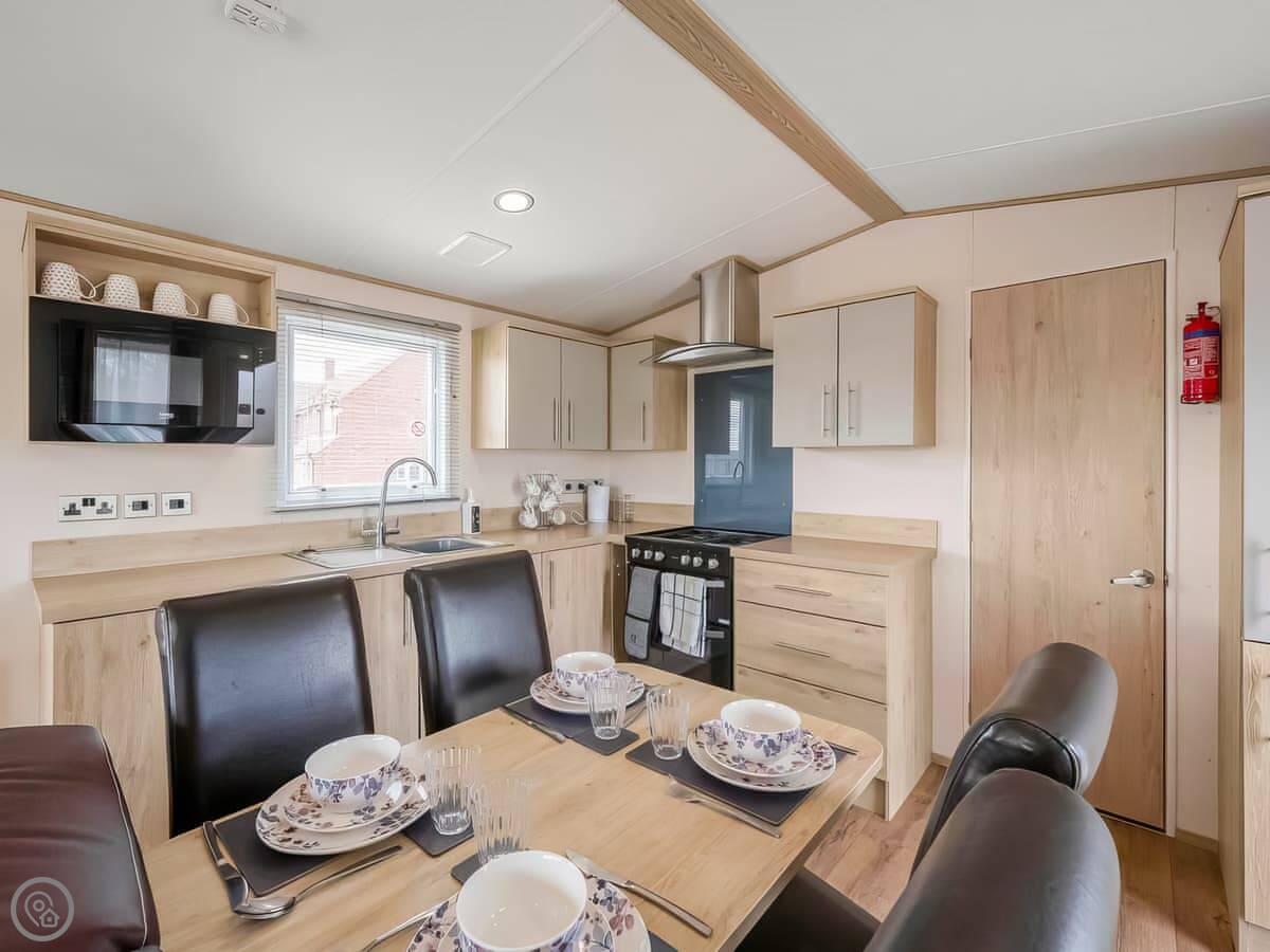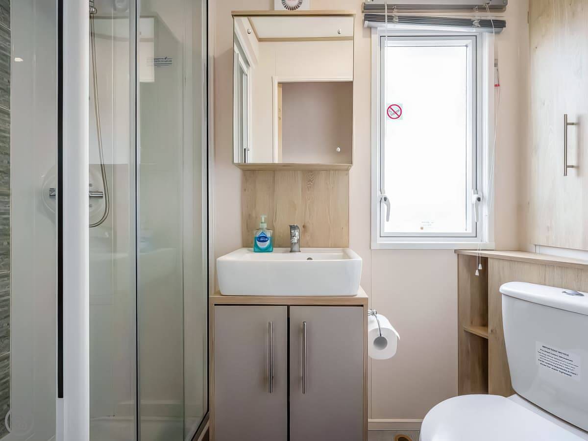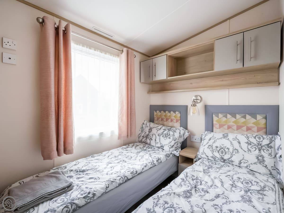 Hallcroft Fishery is a static caravan on a fishing lake site just outside Retford. It's a 4 Star, which means it's clean, modern, and well-equipped. There are two bedrooms and two bathrooms, so it sleeps six but there's decent space.