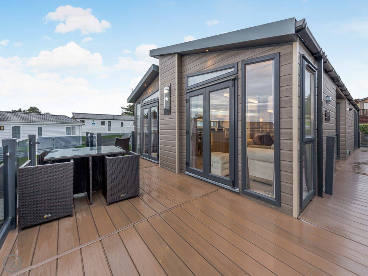 Berry Head is a lodge on the Landscove Holiday Park, just outside Brixham. It's modern, sleeps four, and looks out over the sea.