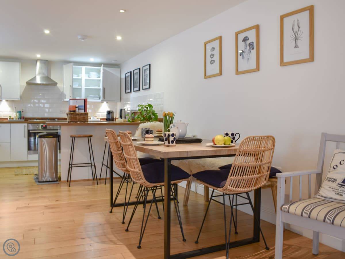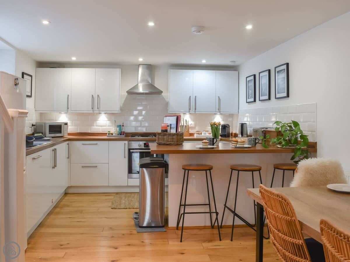 Facilities: it's got a washing machine, dishwasher, WiFi, TV. Bedding and towels are included. There's a cot and highchair if you need them. You can bring up to two dogs. There's no dedicated parking, but there's a long-stay car park a few minutes walk away.