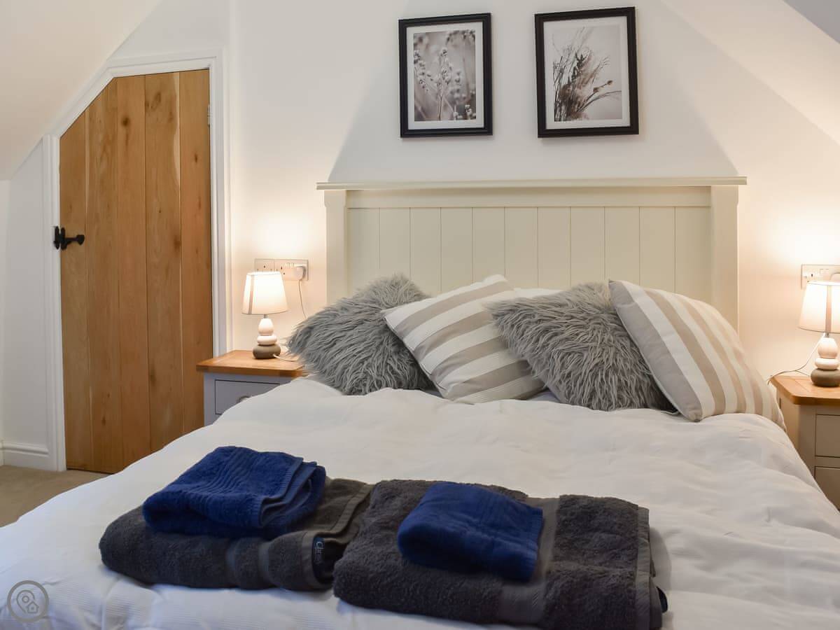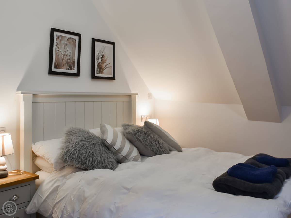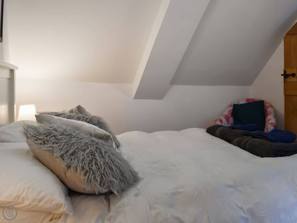 It sleeps six. Three bedrooms, two bathrooms. It's got a 4 Star rating. It's well looked after, comfortable, not huge. The top bedroom is up a steep staircase and has a low bit on the landing you need to duck under. It's fine once you're up there, just mind your head.