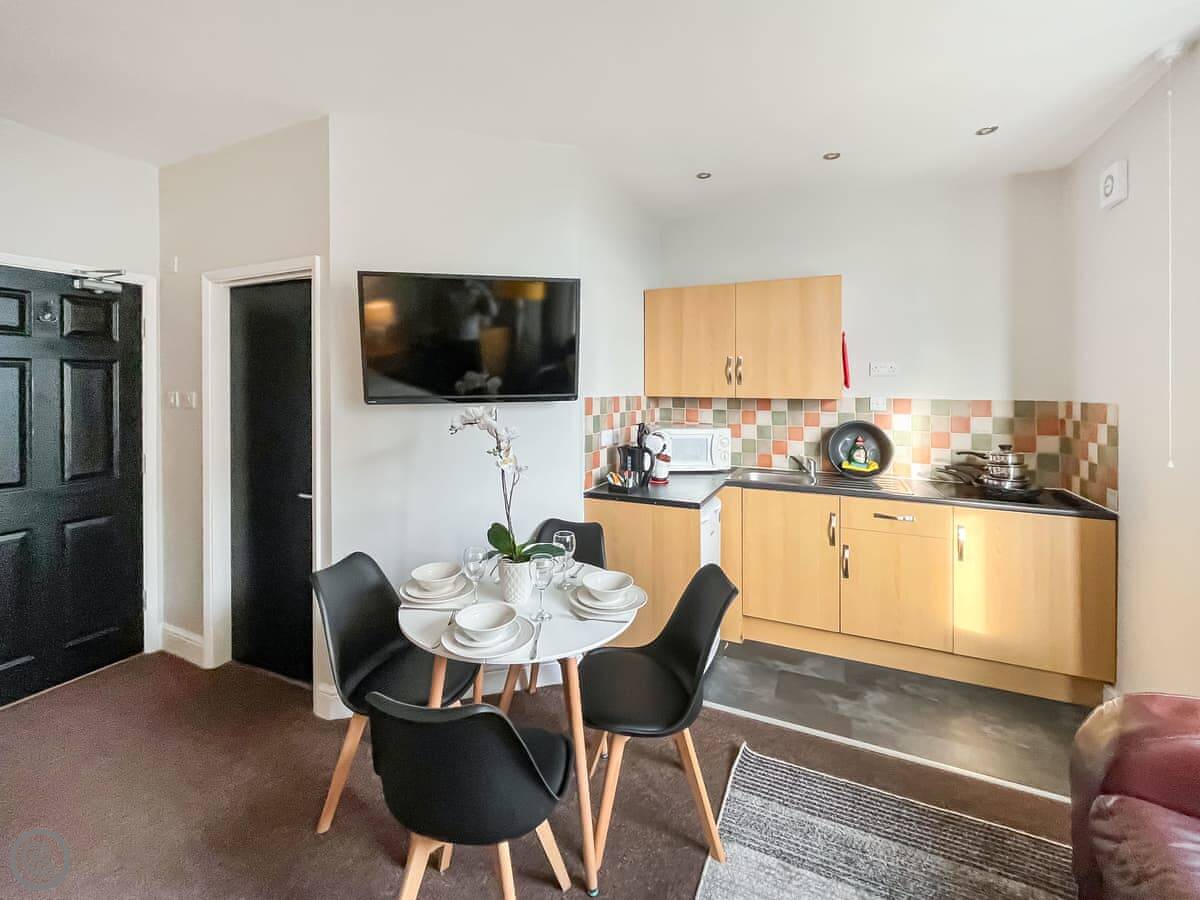 This is Pier View Apartment 2 in Skegness. It's a one-bedroom apartment on the first floor. Sleeps two, rated 4 Star.