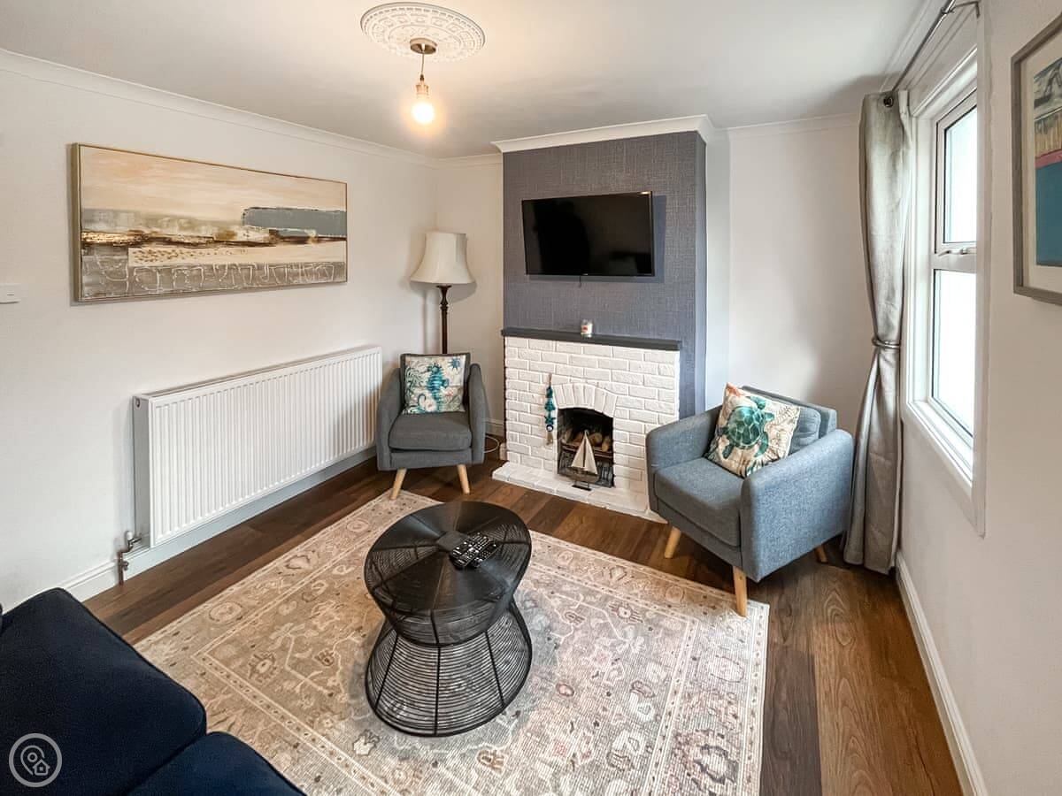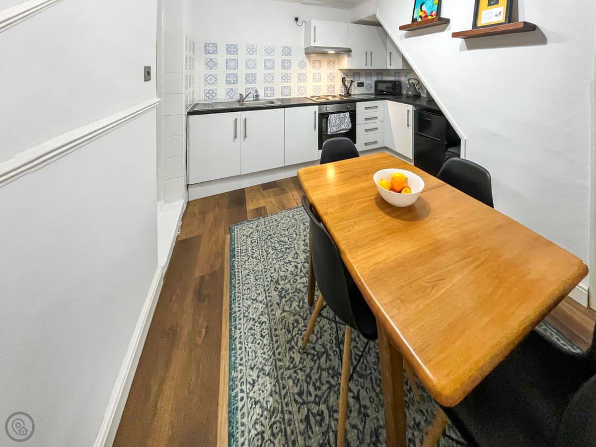 Inside, it's straightforward. Two bedrooms, one double and one with twins. The stairs are a bit steep, like a lot of these old houses. Everything’s clean and works. There's WiFi and a TV. Bedding and towels are included. We can provide a cot and a highchair if you need them. You can bring one well-behaved dog.