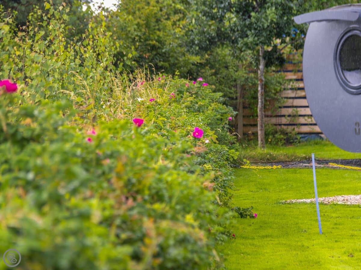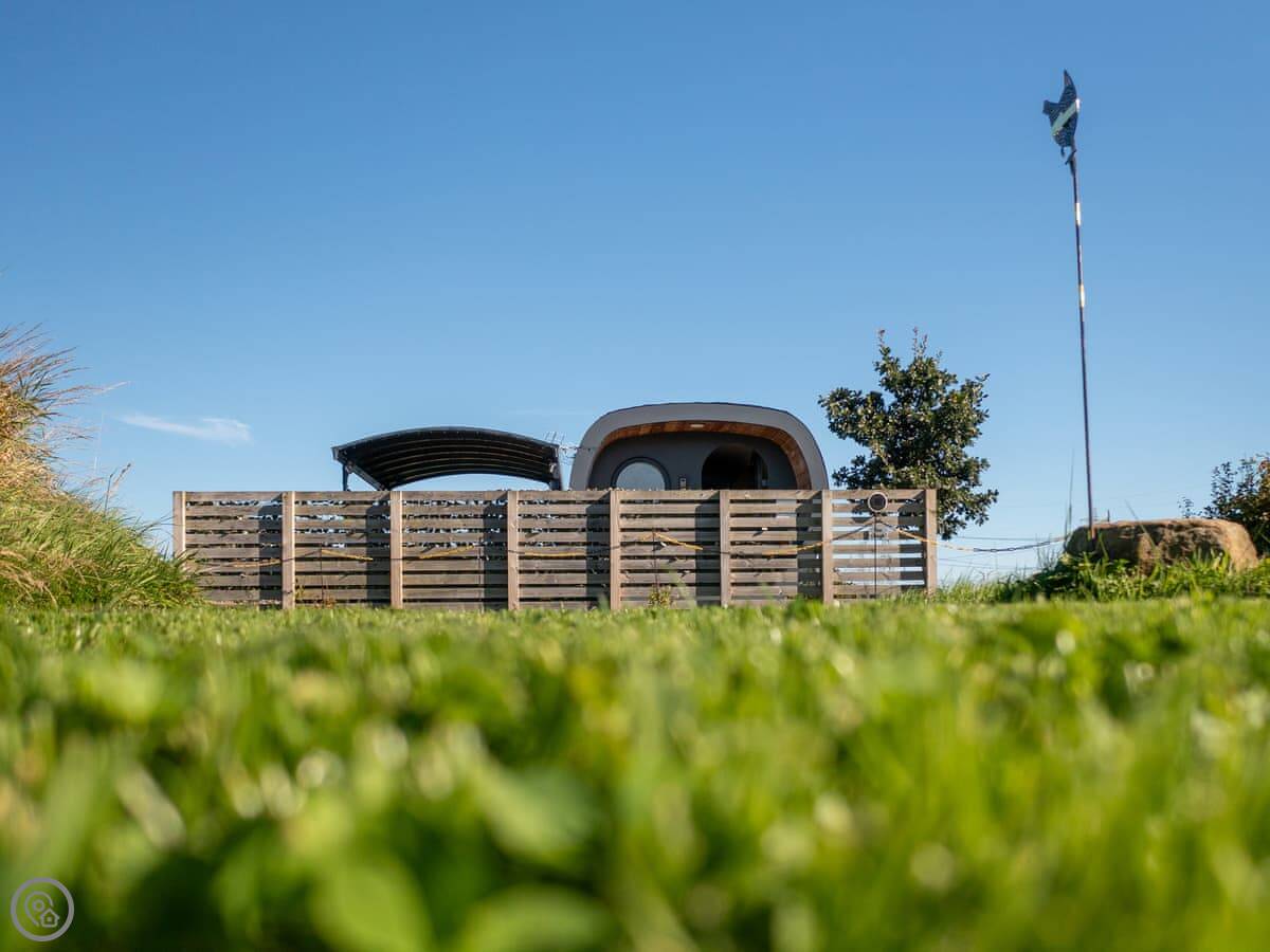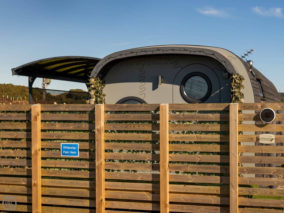 Whitewisp is on our land in Kennet, in Clackmannanshire. It's a timber pod, on its own, with a gravel spot for your car right next to it.
