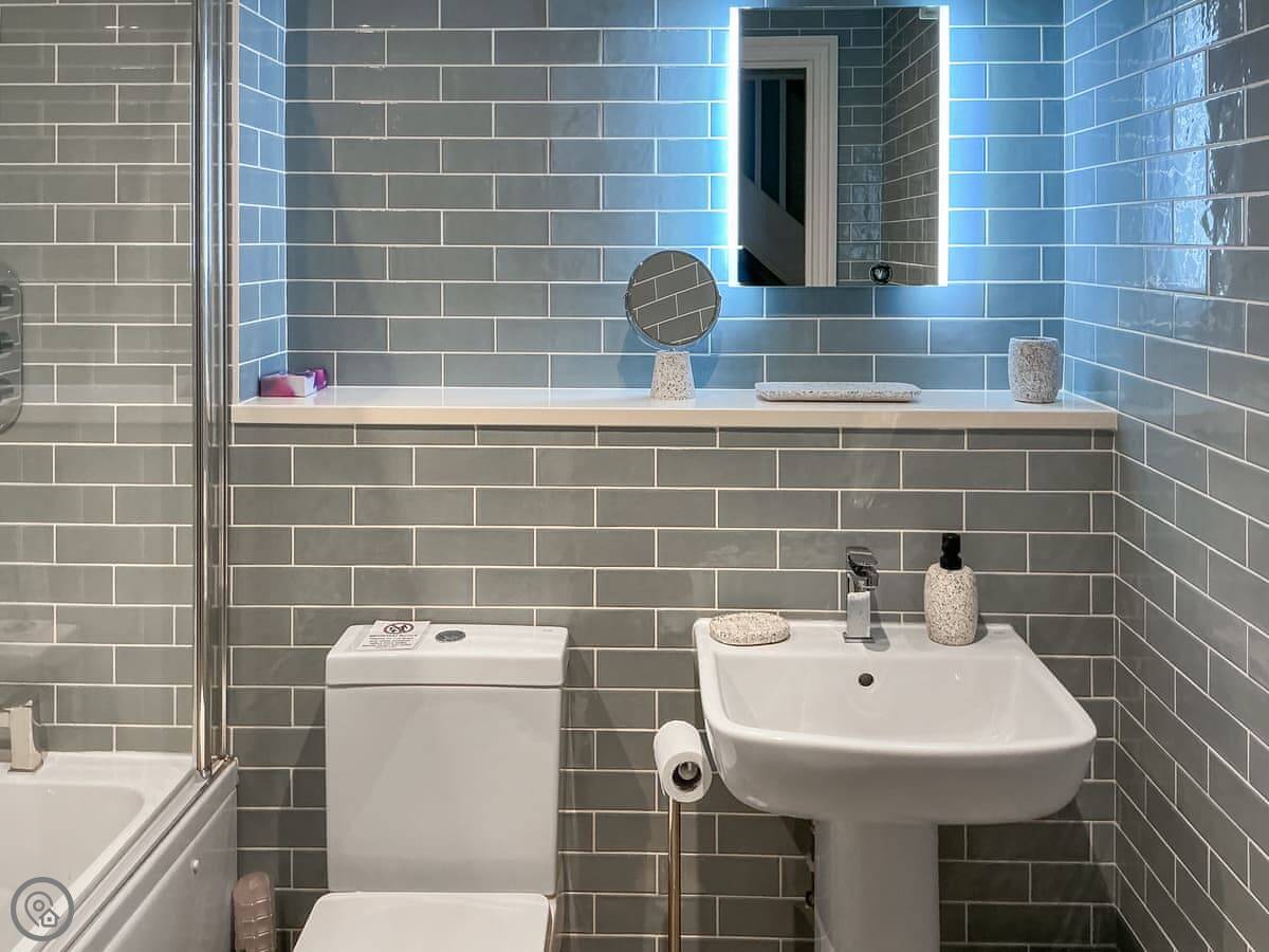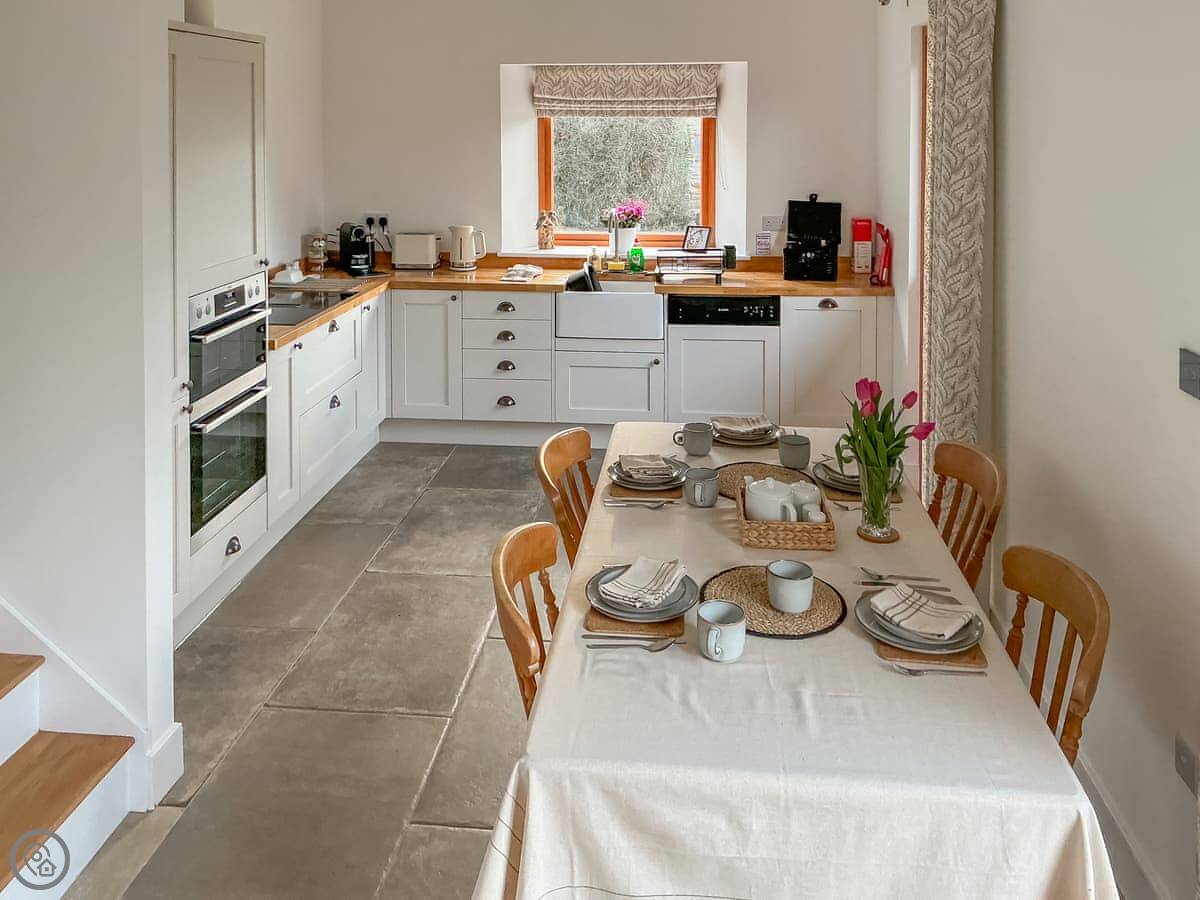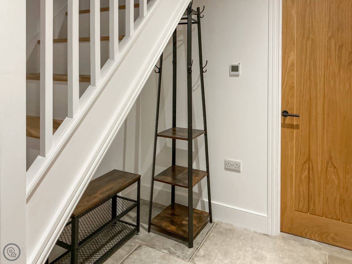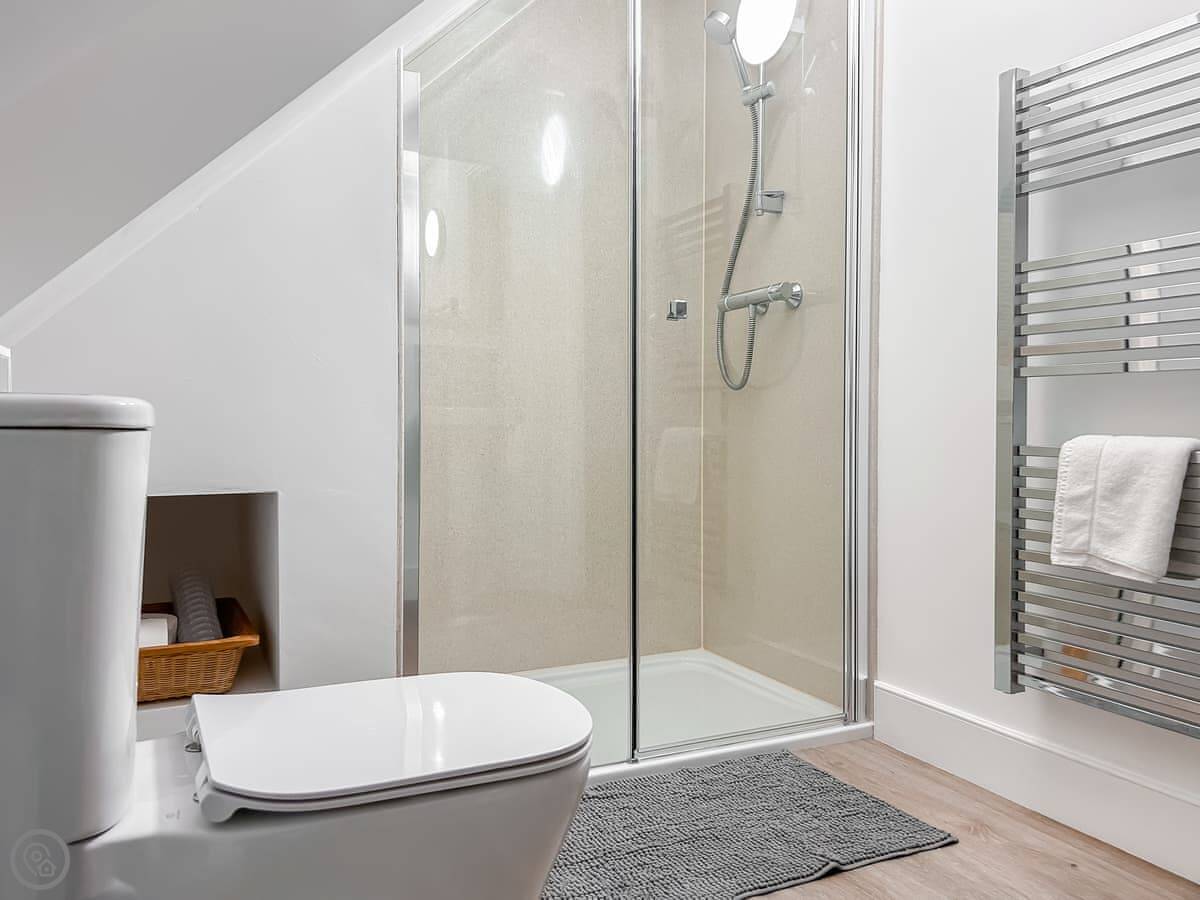 It sleeps five. Two bedrooms, one bathroom upstairs and a family bathroom downstairs. It's got a 4 Star rating. It's comfortable and well finished.