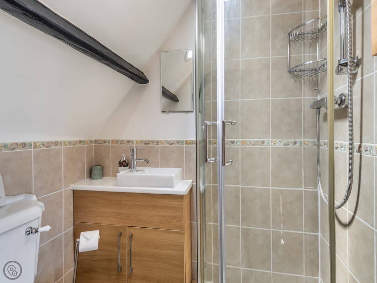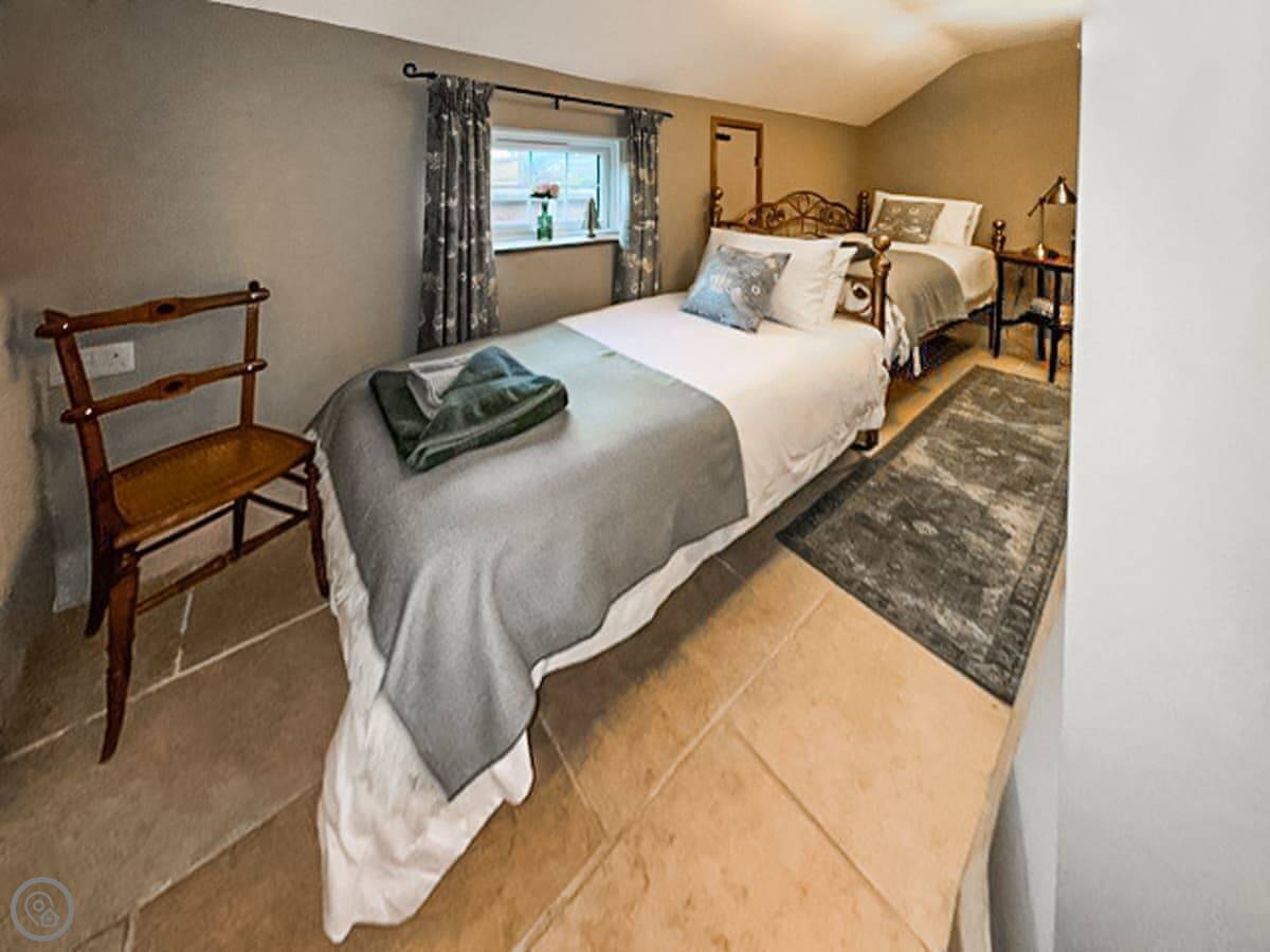 It sleeps six. Three bedrooms, two bathrooms. One of the bedrooms and a shower room are on the ground floor, so that's useful. It's got a 5 Star rating, which means it's well kitted out and comfortable.
