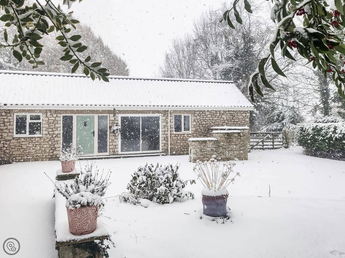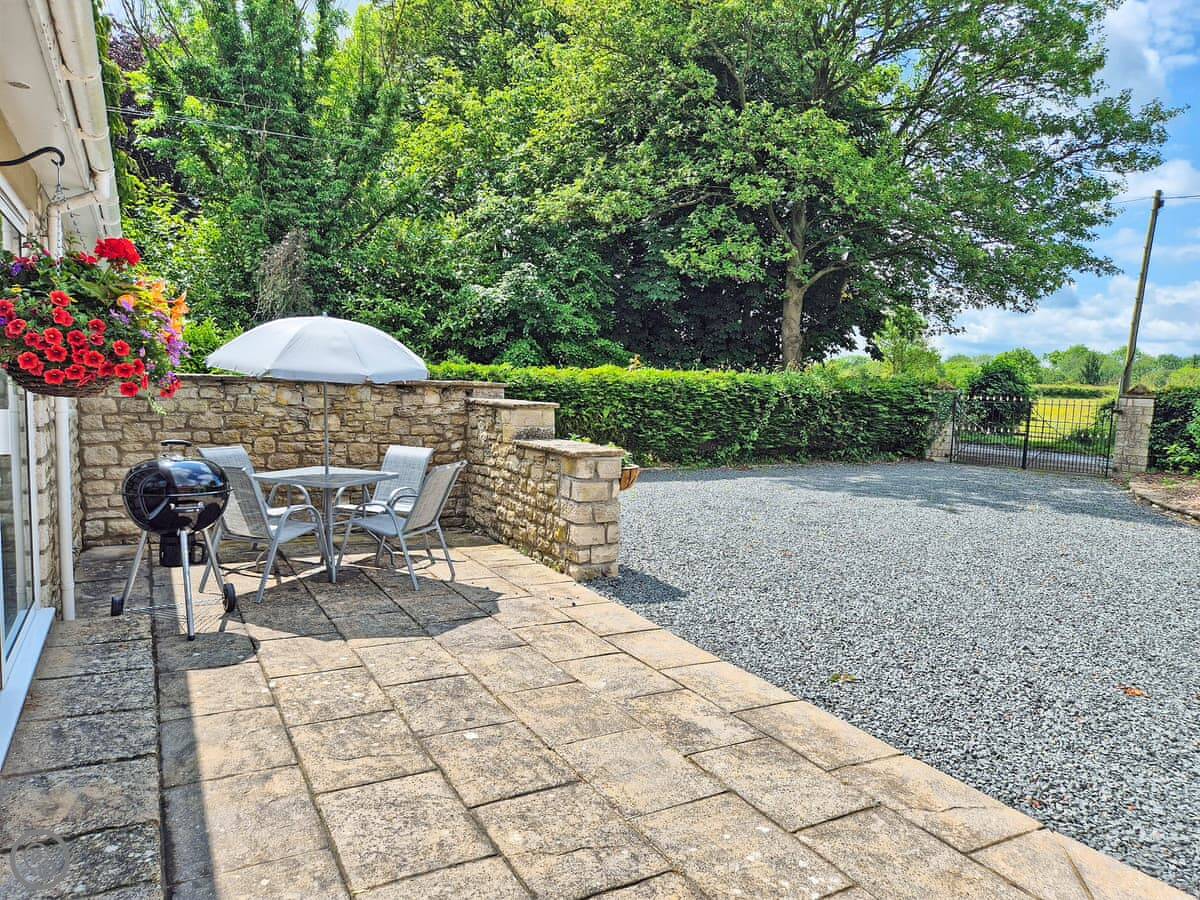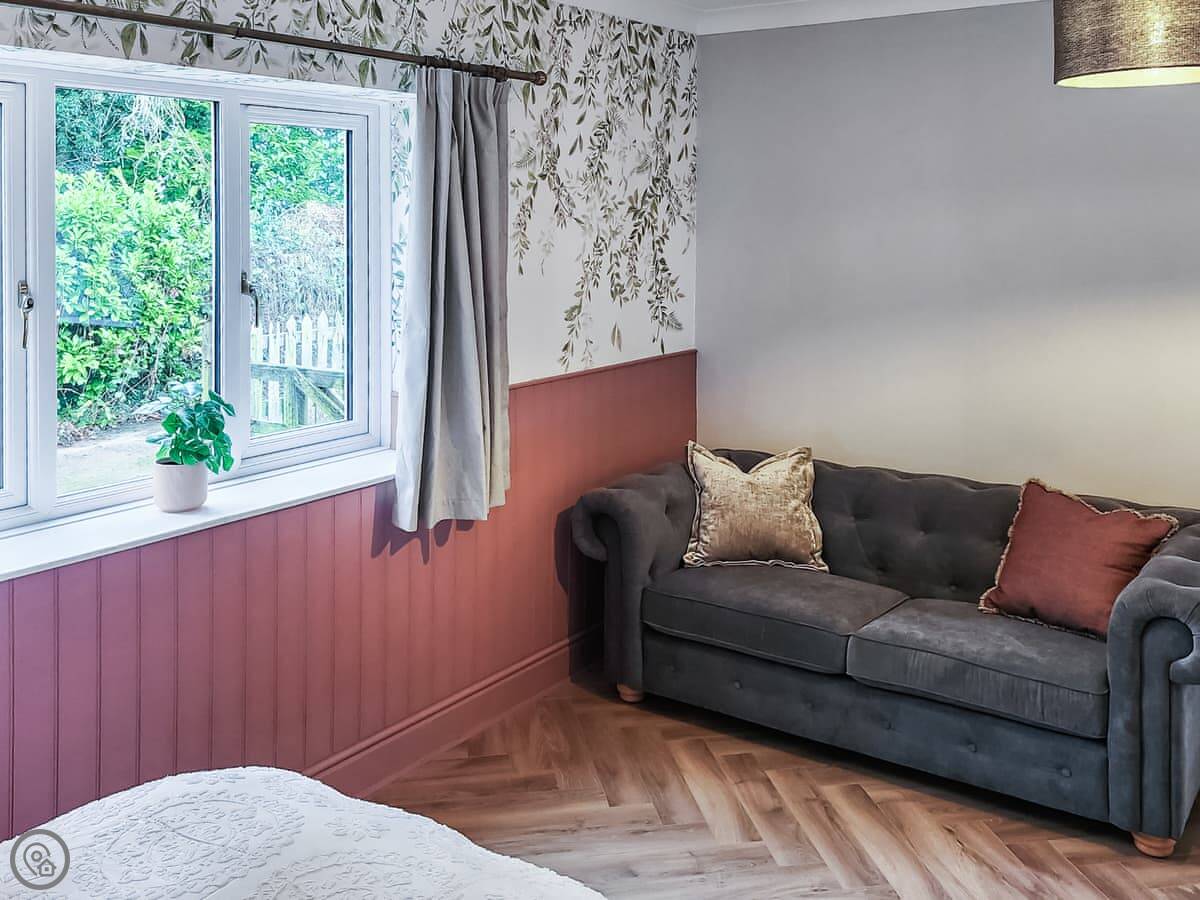 It's a barn conversion, sleeps four. There's one large bedroom and one bathroom. It's got a 4 Star rating. The main room is open plan, kitchen and living area together. There's a TV and Wi-Fi. Patio doors open out to an enclosed garden.