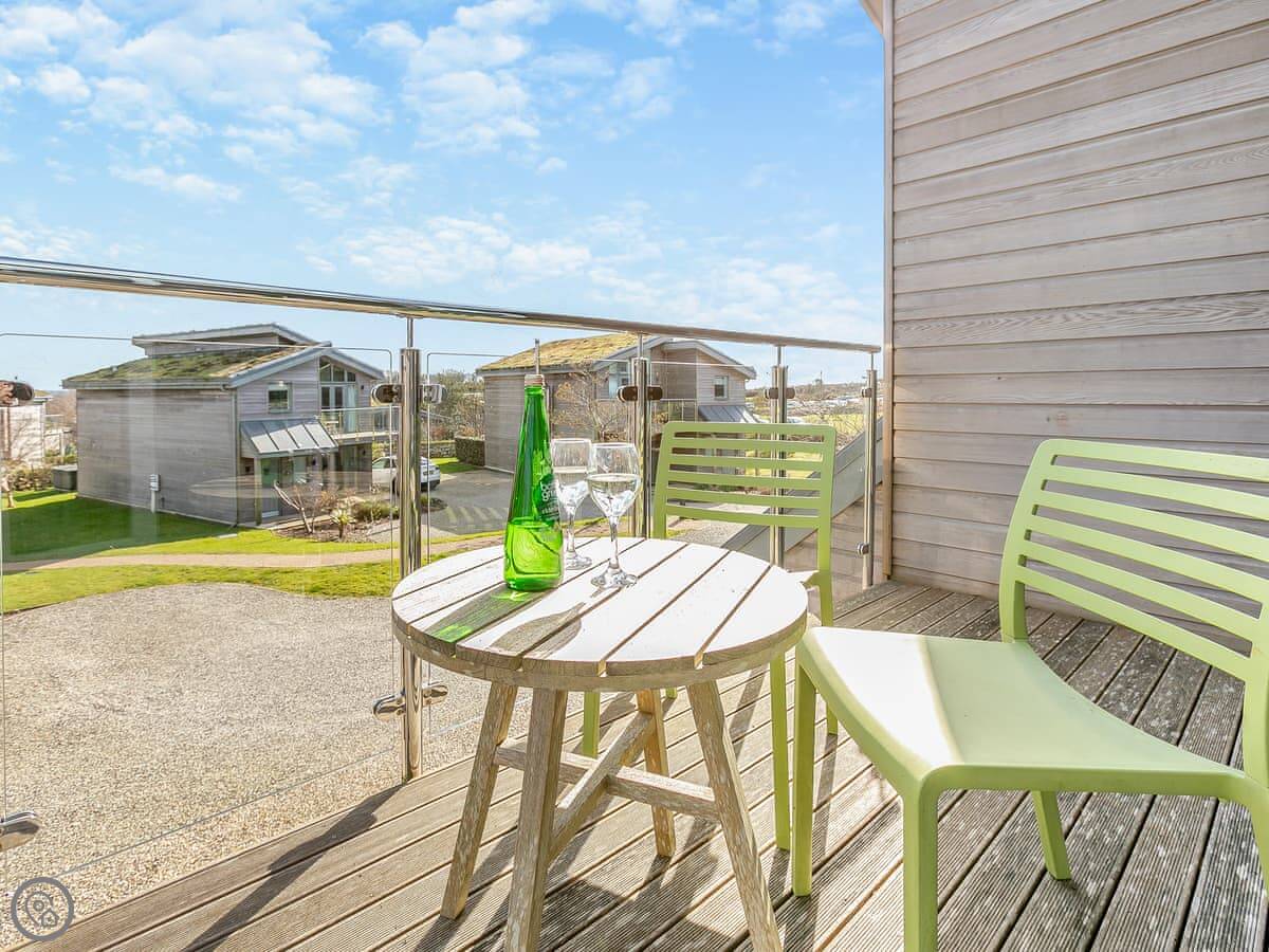 Lodge 65 Una is a house on the Una site in Carbis Bay. It's one of many lodges there. You get a decked garden with a table and chairs.