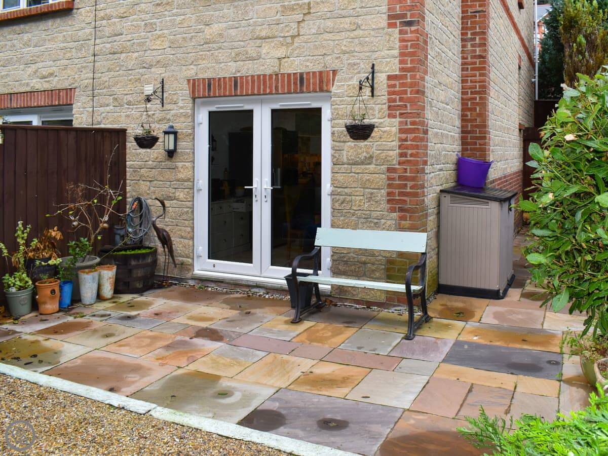The view is what you'll notice first. It looks straight out over the downs. St Boniface Down is right there, which is National Trust land. Good for a walk. The garden patio is a sun trap. The patio doors from the kitchen open right onto it. There's a woodburner in the lounge for colder evenings.