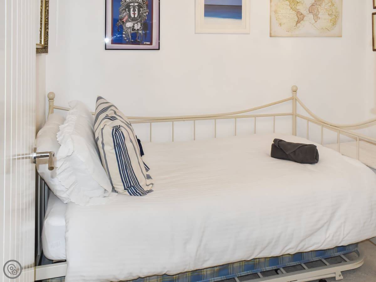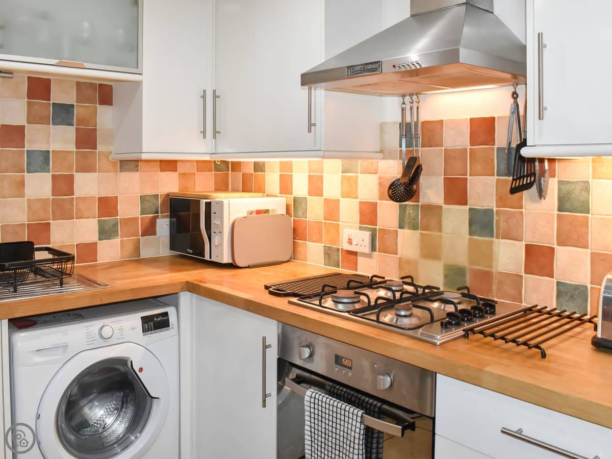 For facilities, you've got pretty much what you'd expect. WiFi, TV, washing machine, dishwasher. Bedding and towels are included. There's parking on site. The garden is enclosed. Sorry, no pets.