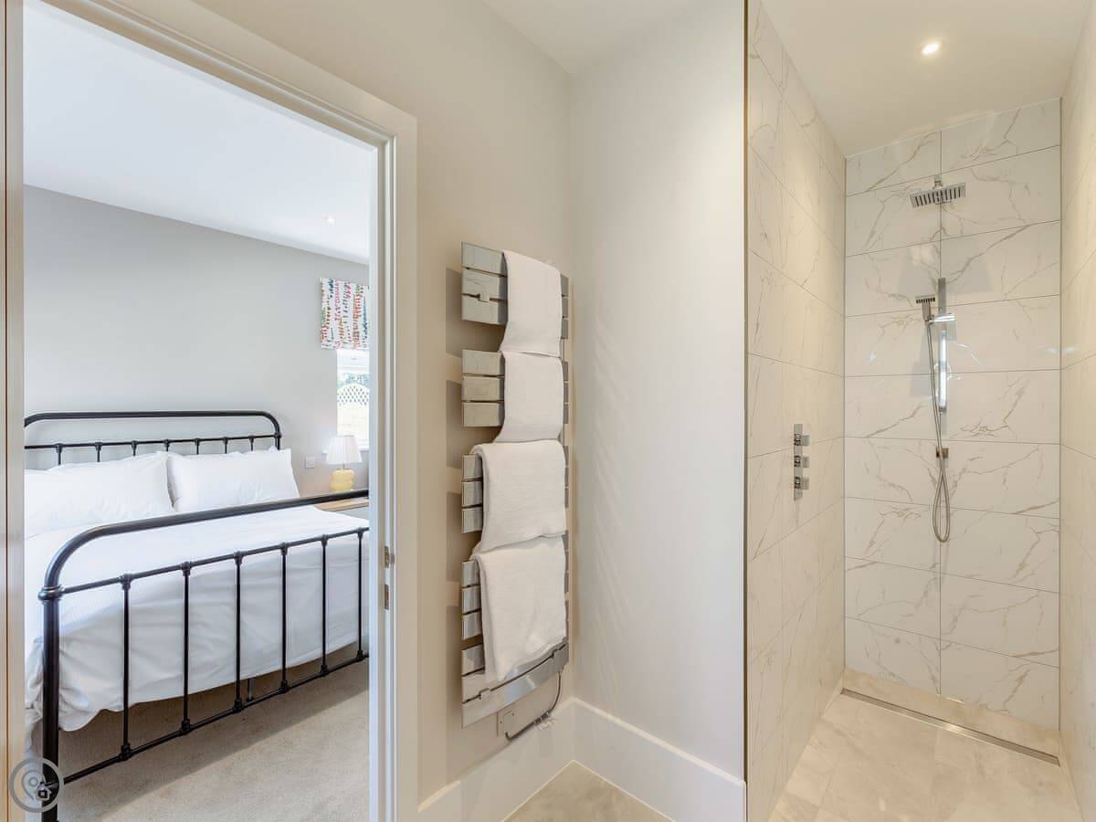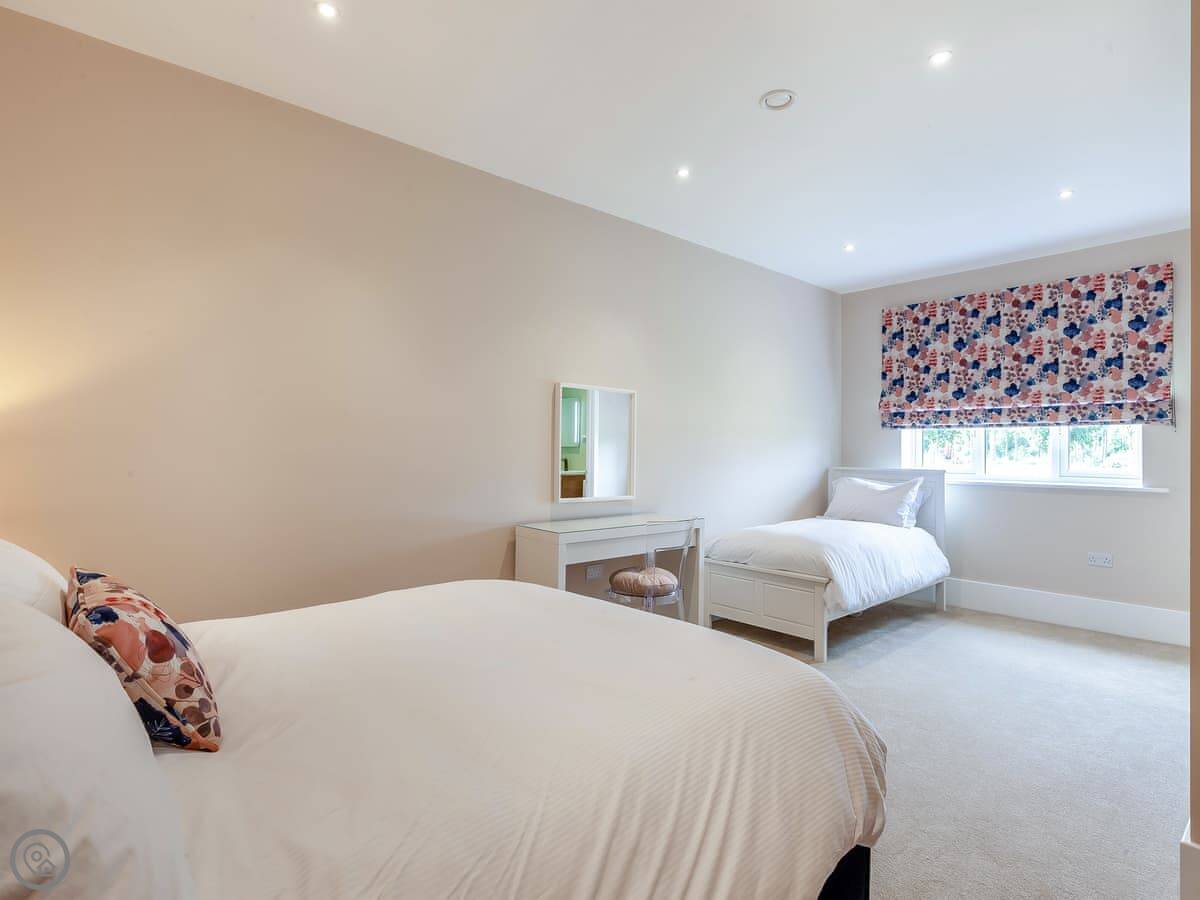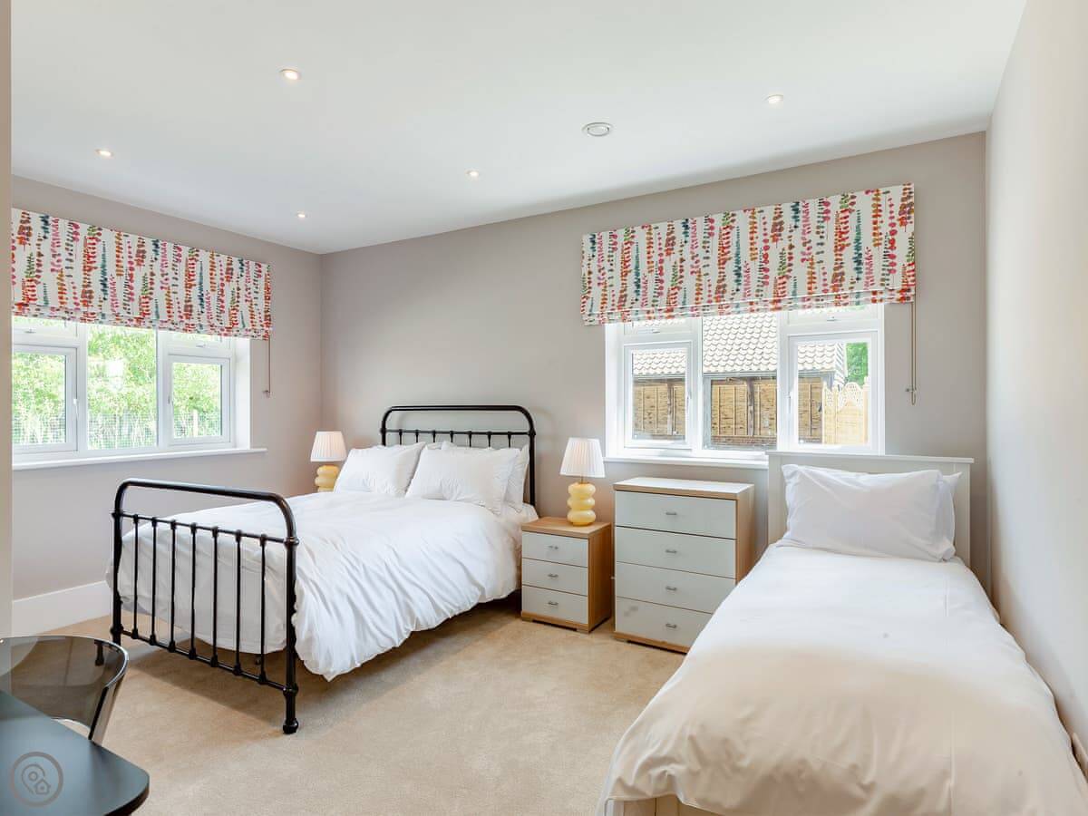 The Cartlodge is on the edge of Rochford. It's a detached barn conversion. It sleeps ten, in four bedrooms. Crucially, each bedroom has its own bathroom, which with that many people makes a big difference.