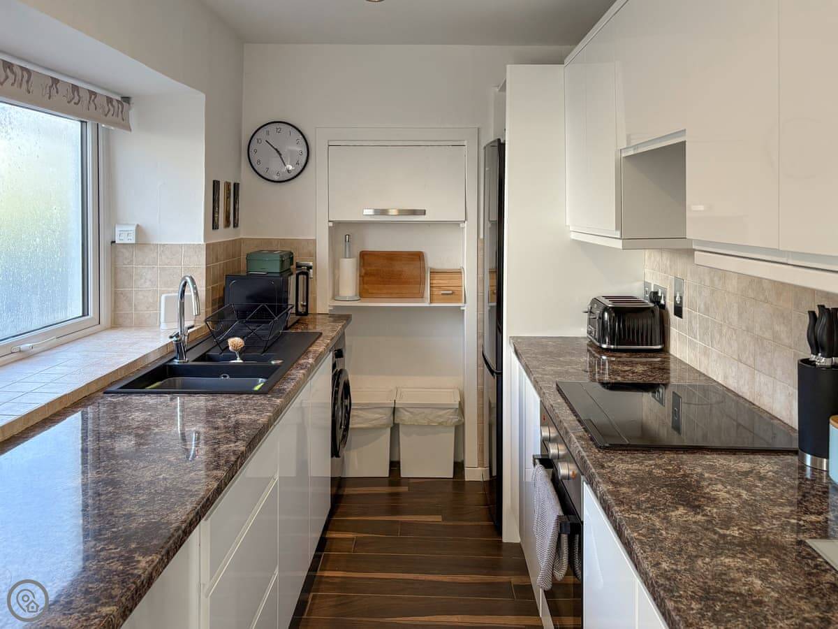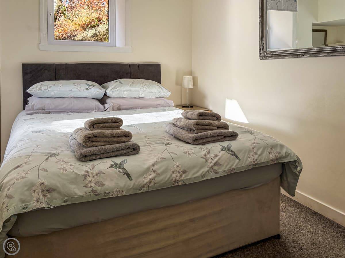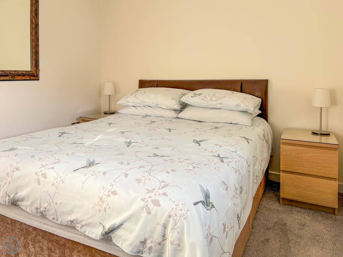 It sleeps four. Two bedrooms, both with king-size beds, and one bathroom. It's got a 4 Star rating. There's an enclosed garden at the back with a barbecue. The garden has high fences, good if you have dogs.