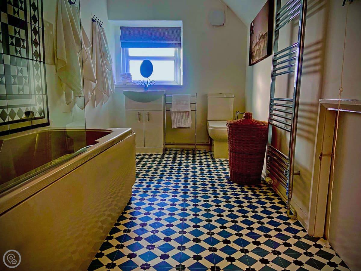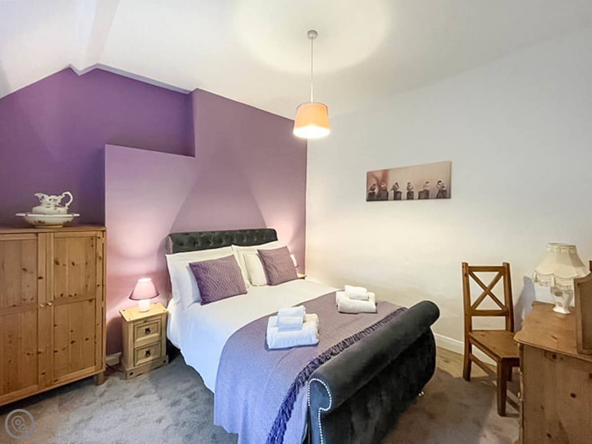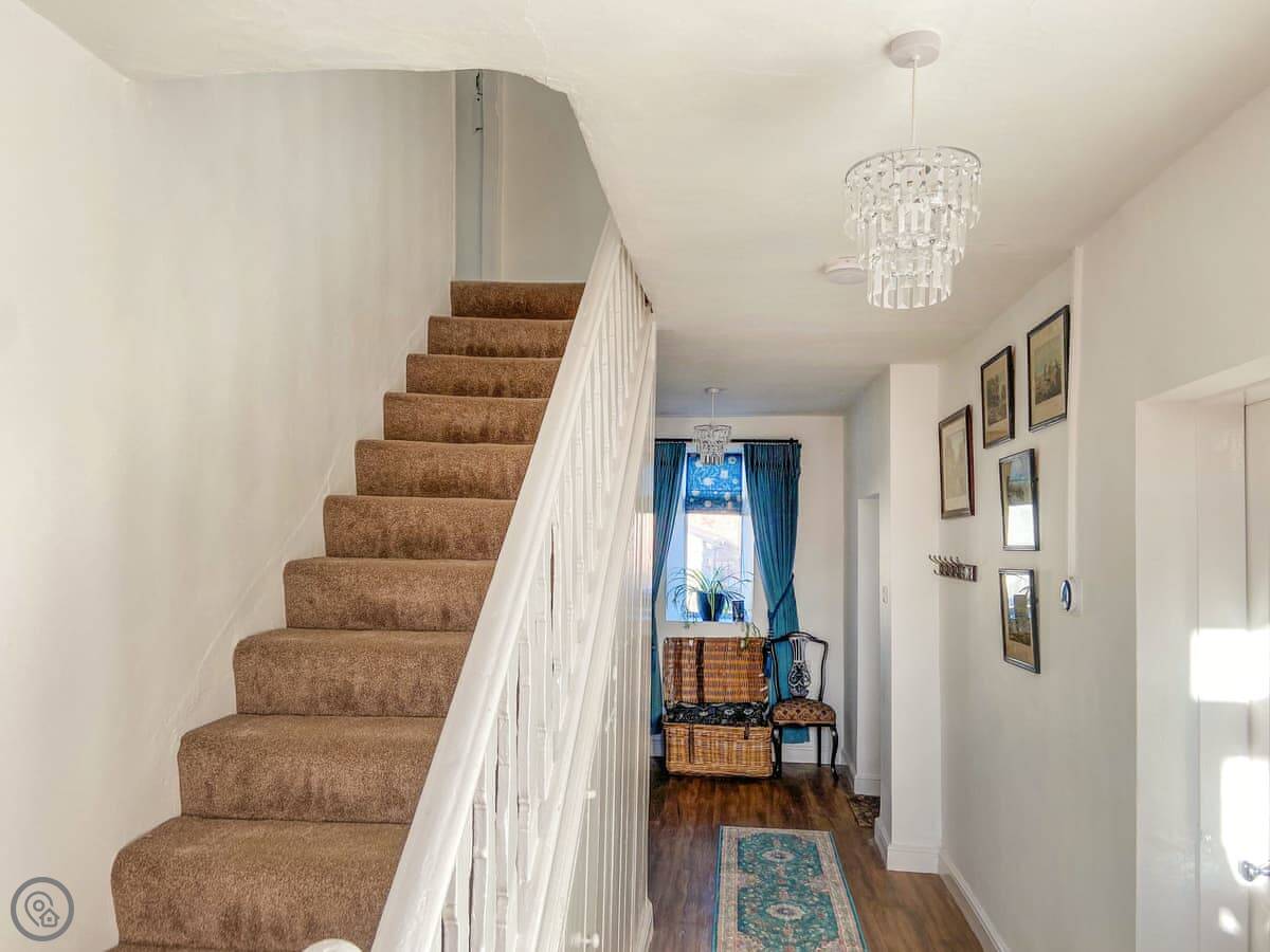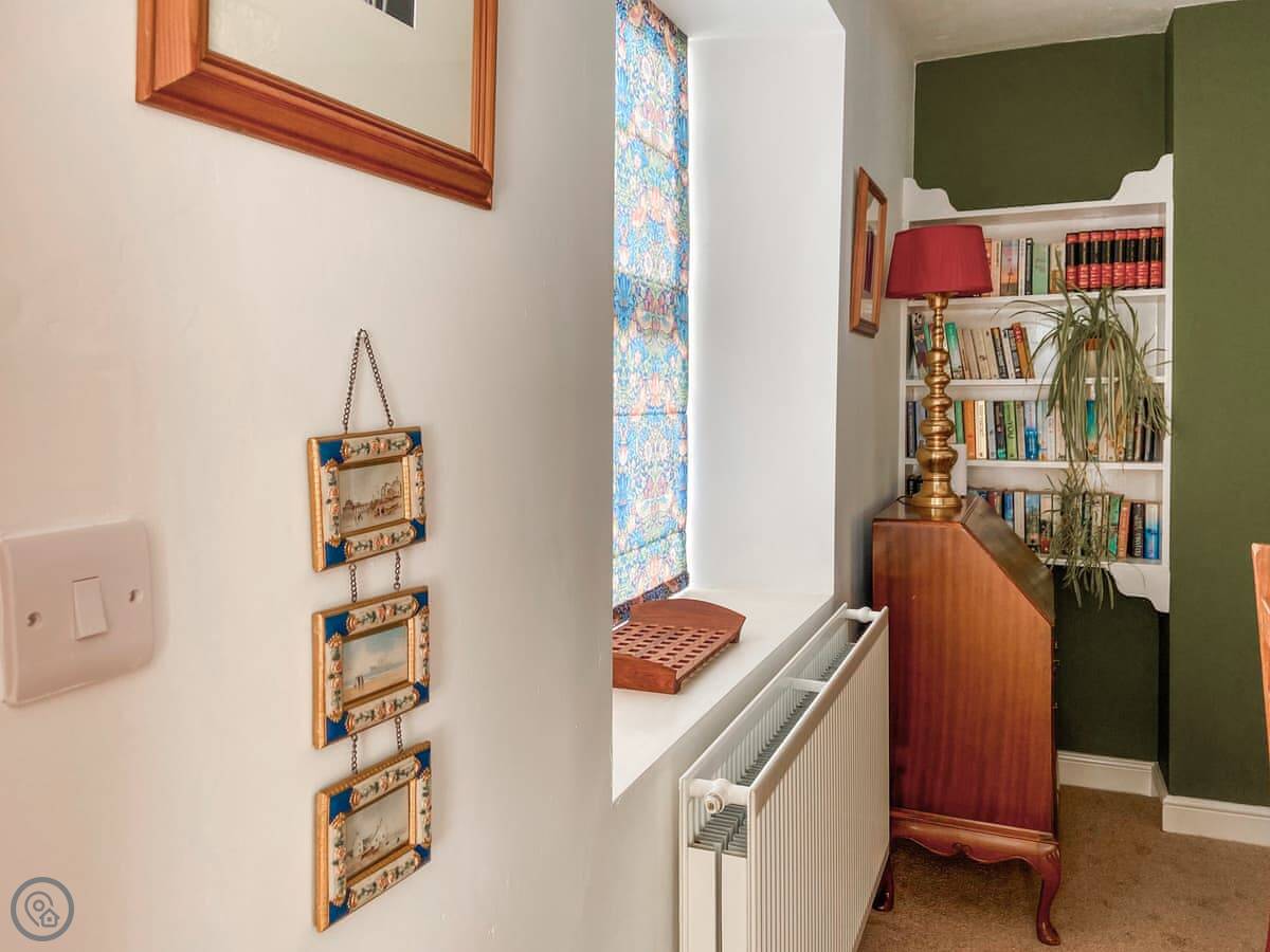 It sleeps six. Three double bedrooms, one family bathroom. It's got a 4 Star rating. There's a wood burner in the kitchen. The stairs are typical for an old building, so they're a bit steep and turn.