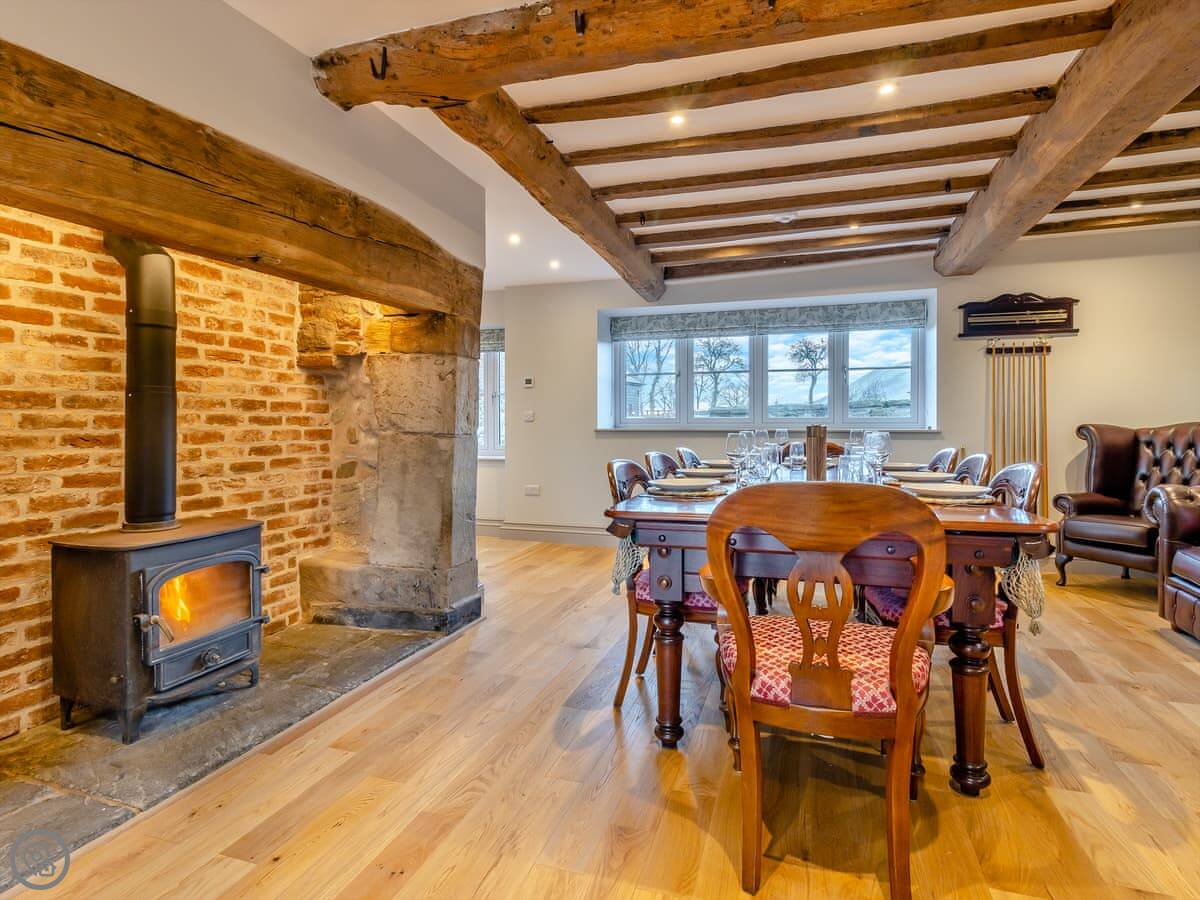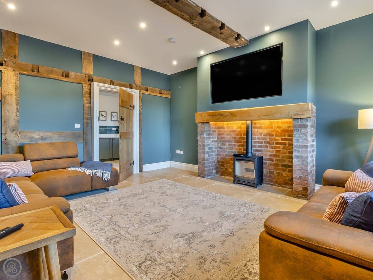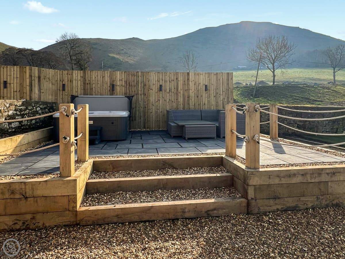It's been done up. The kitchen is big and open plan, with a range cooker. There's an orangery off it, which is a bright space to sit. The living room has a woodburning stove. The garden is enclosed, with a patio area and a barbecue. It has a hot tub.