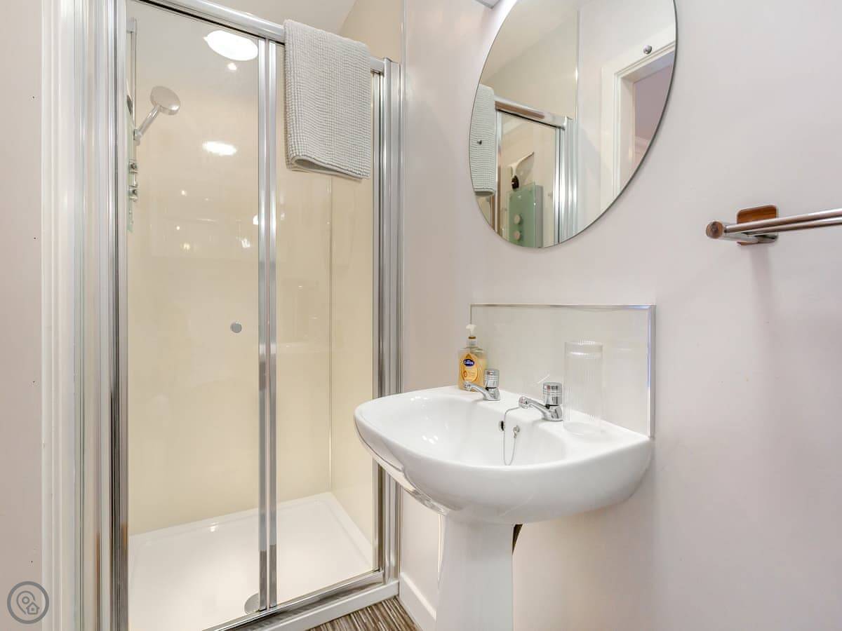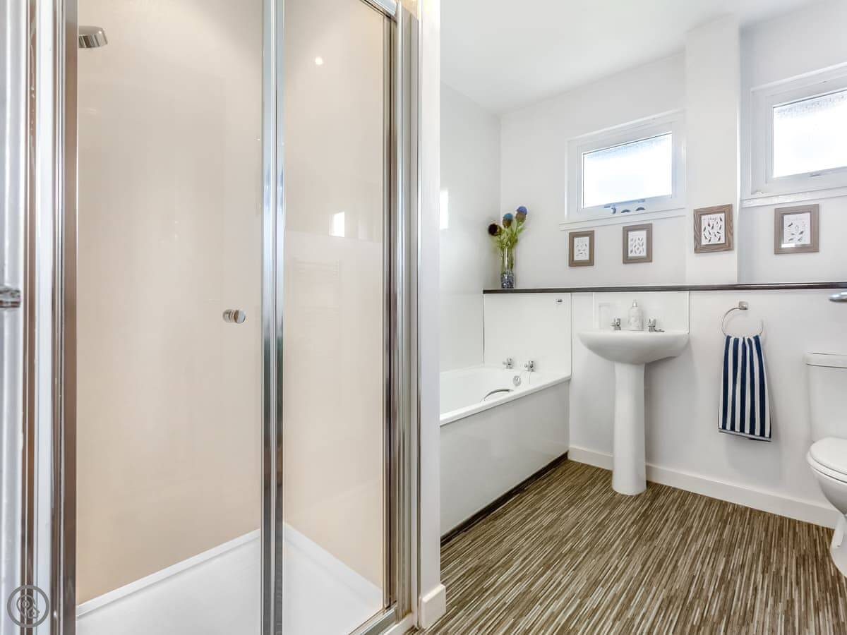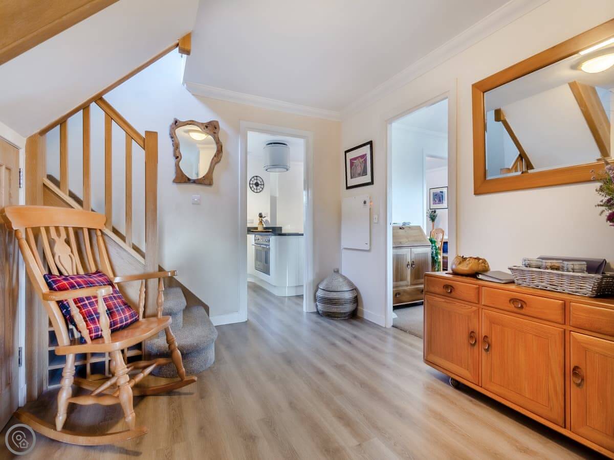 Inside, there's a wood burner in the living room. The kitchen is a good size with a dishwasher and a washing machine. The garden is enclosed, which is useful if you're bringing dogs. You can bring up to two.