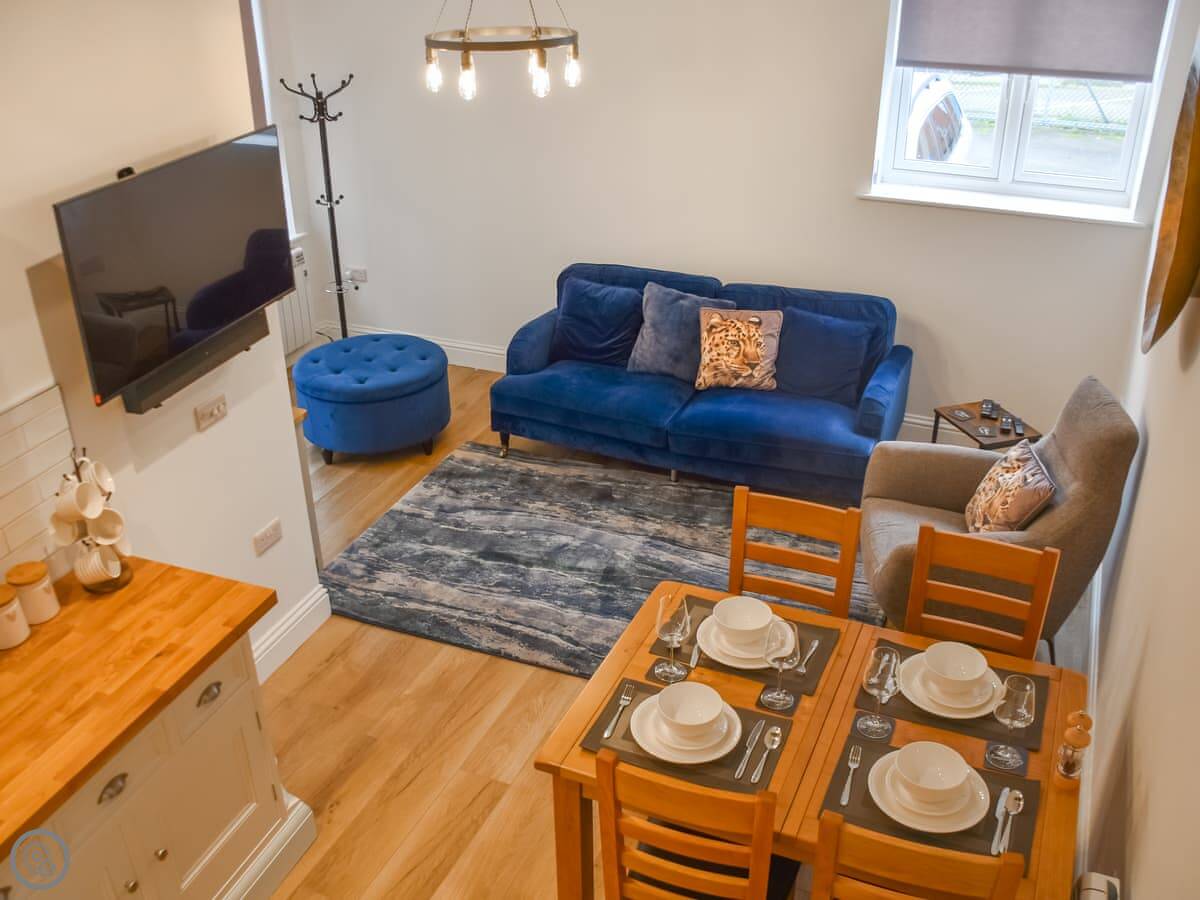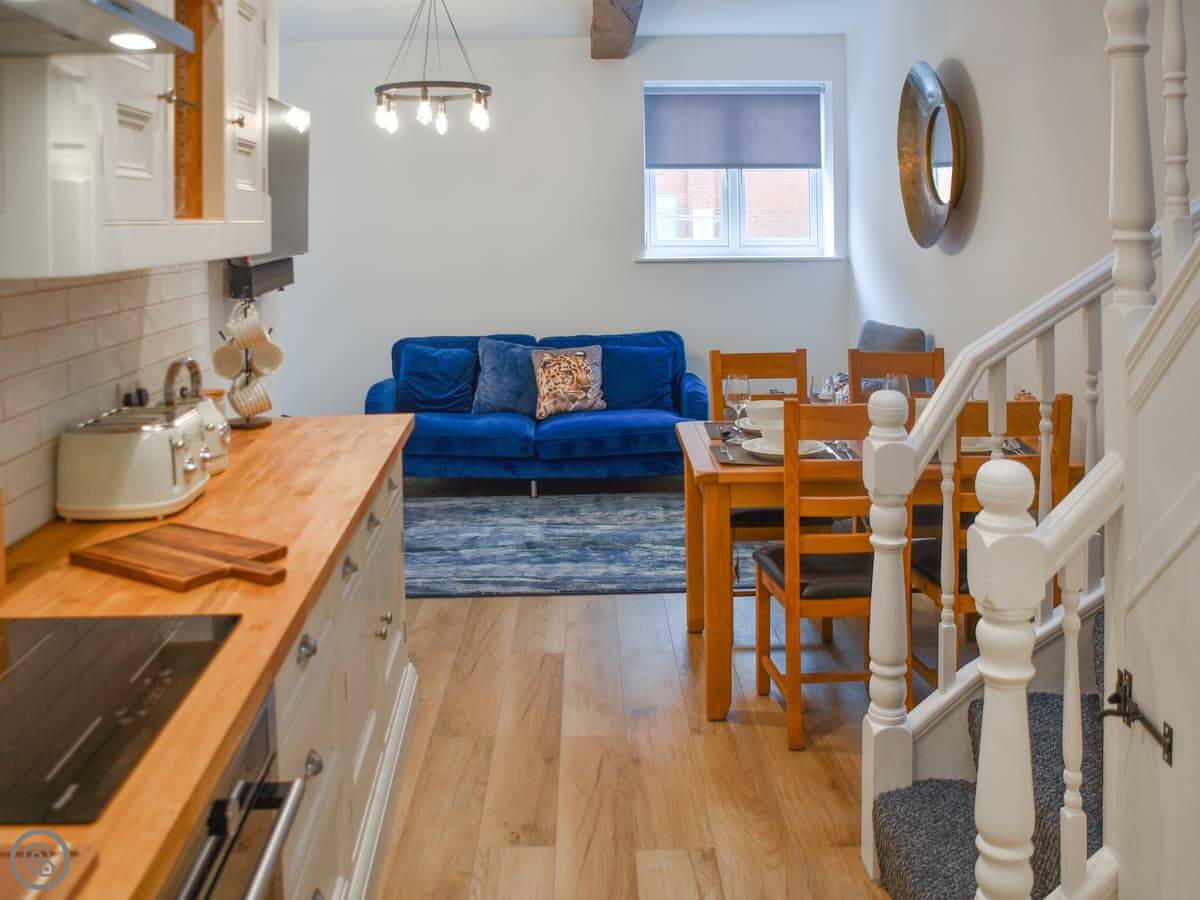 It sleeps four. Two bedrooms, one bathroom. The stairs are a bit steep, as you'd expect in an old townhouse. It's got a 5 Star rating, which means it's well-equipped and comfortable. It's open plan downstairs, with the kitchen and living area together.