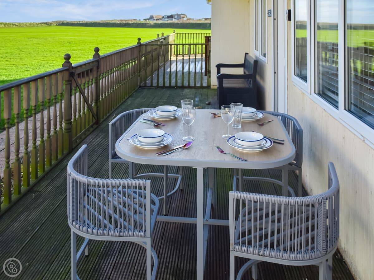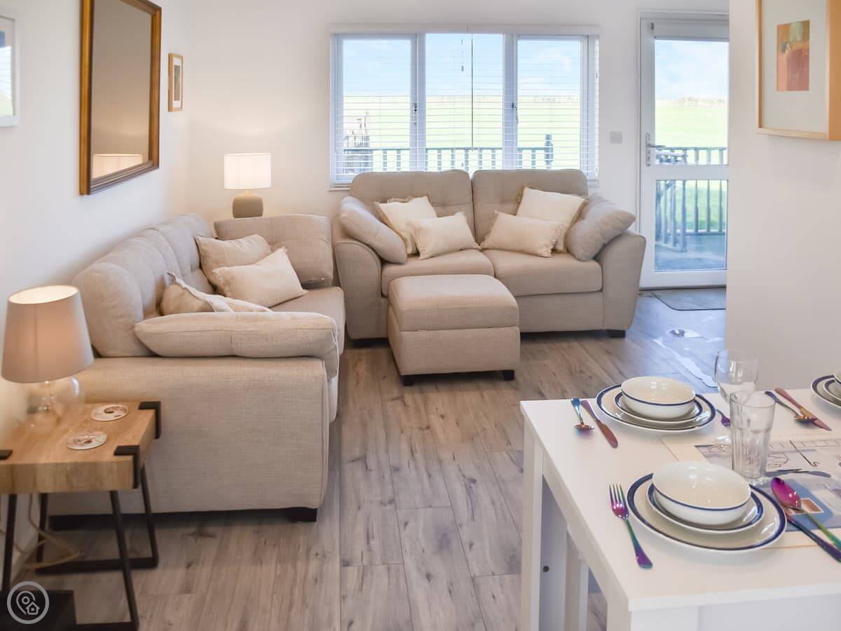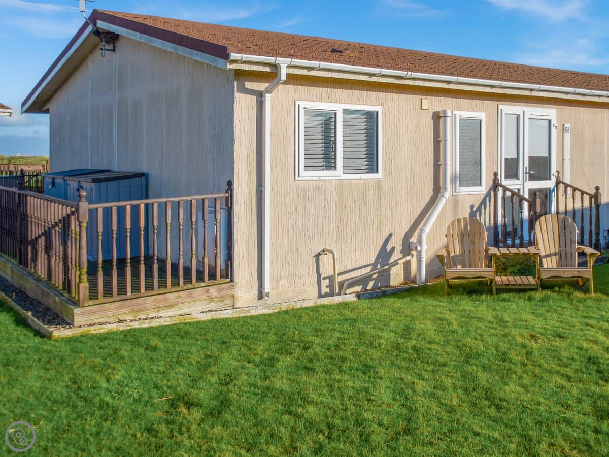 This is Seaspace. It's a chalet in Bacton, right on the Norfolk coast. You look directly out over the green to the sea.