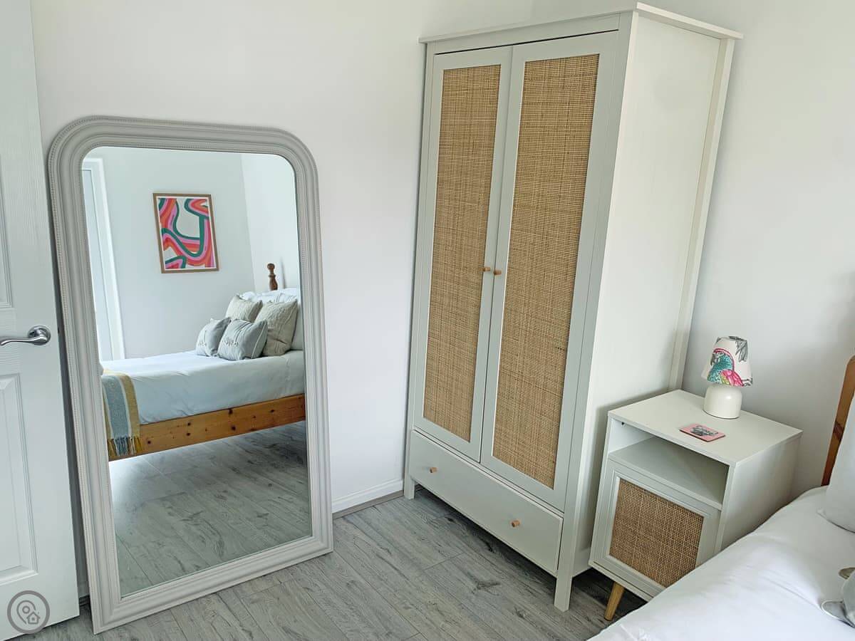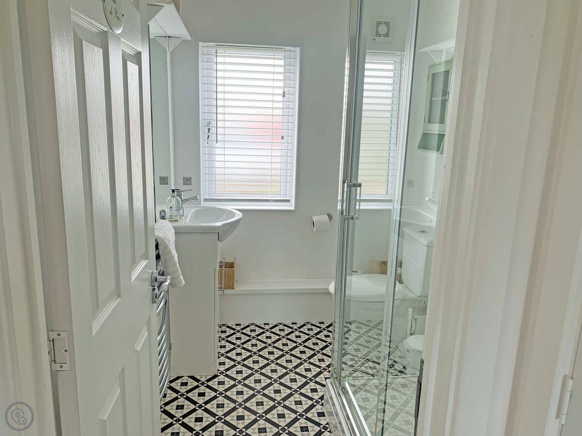It sleeps four in two bedrooms. One double, one with twins. One bathroom with a shower. It's a 4 Star, so it's comfortable and well-equipped.