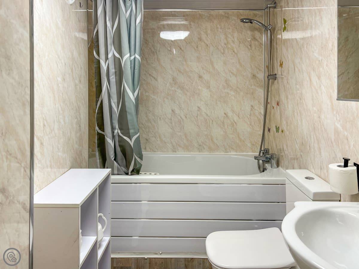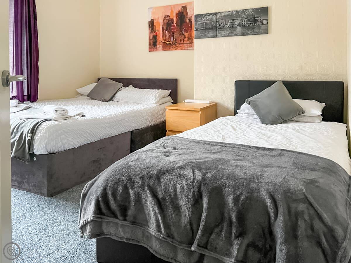 The house sleeps eight. Four bedrooms, one bathroom. It's a 3 Star, so it's clean and tidy without being high-spec. There's a storage shed out the back if you need to put bikes or fishing gear away. You can bring up to two dogs. There's a decent dog-walking park about five minutes away.