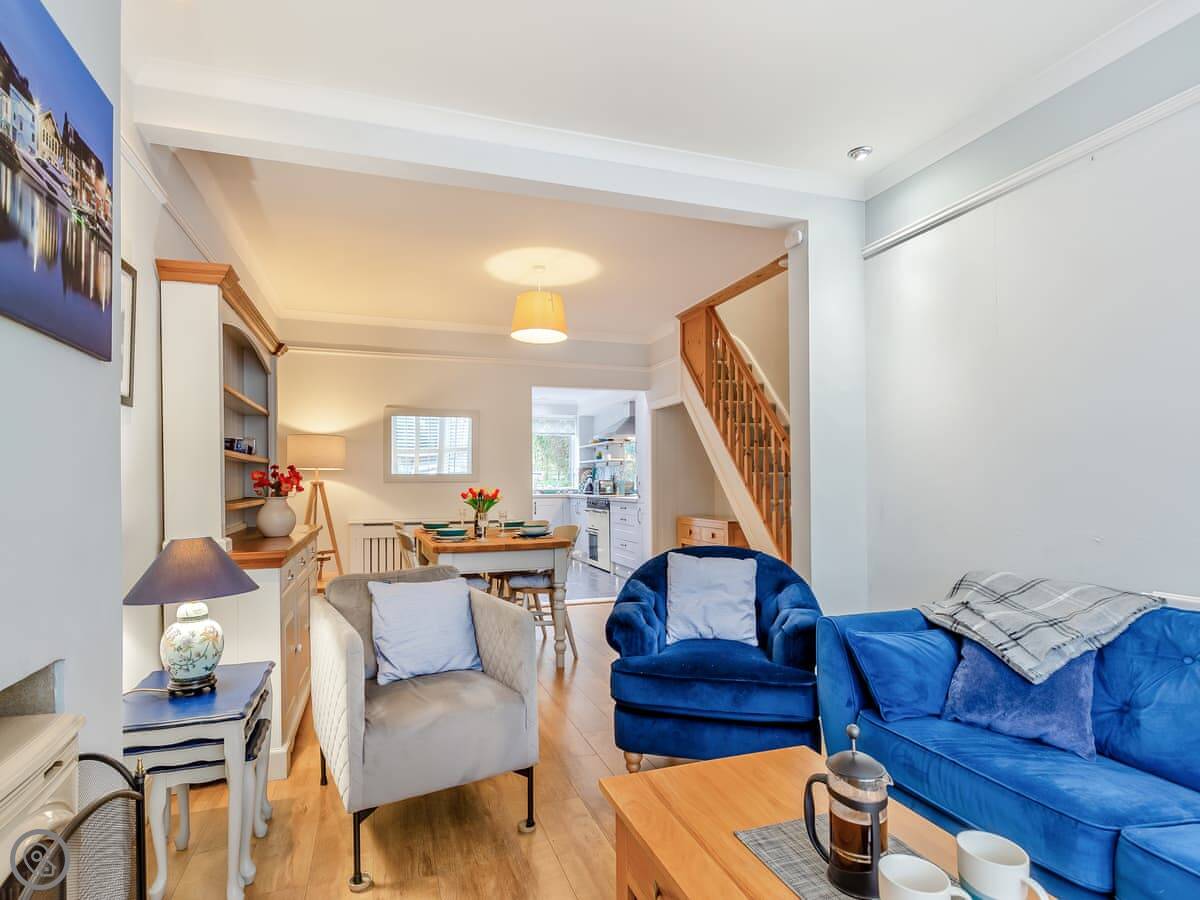 This is Pebble Cottage in Weymouth. It's on a quiet street but you're only about a ten minute walk from the harbour and the beach. It's a terraced house, but you've got your own garden out the back.