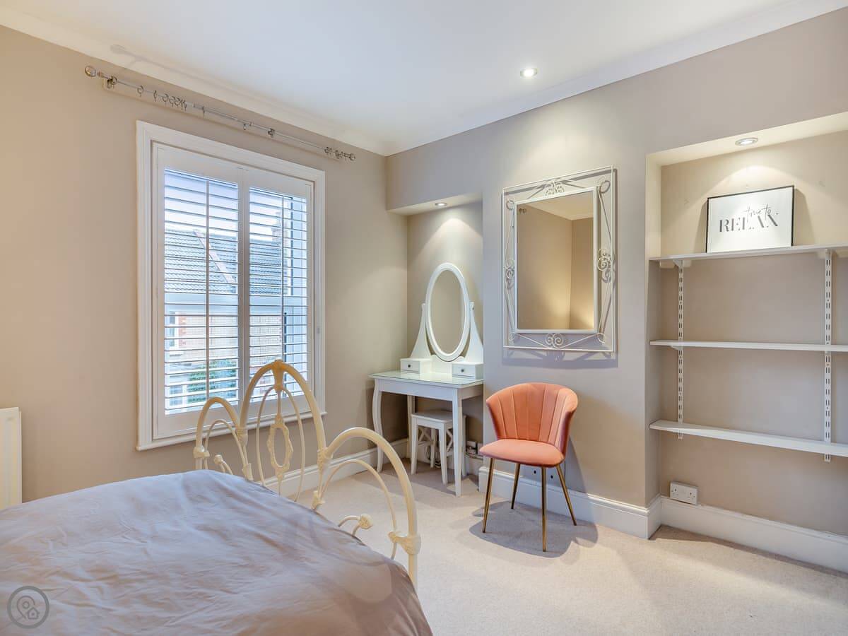 The main thing is the garden room. It's a separate building in the garden with a sofa and a TV. It's useful if someone wants to watch something different, or if the kids want their own space. The garden itself is enclosed, which is good.