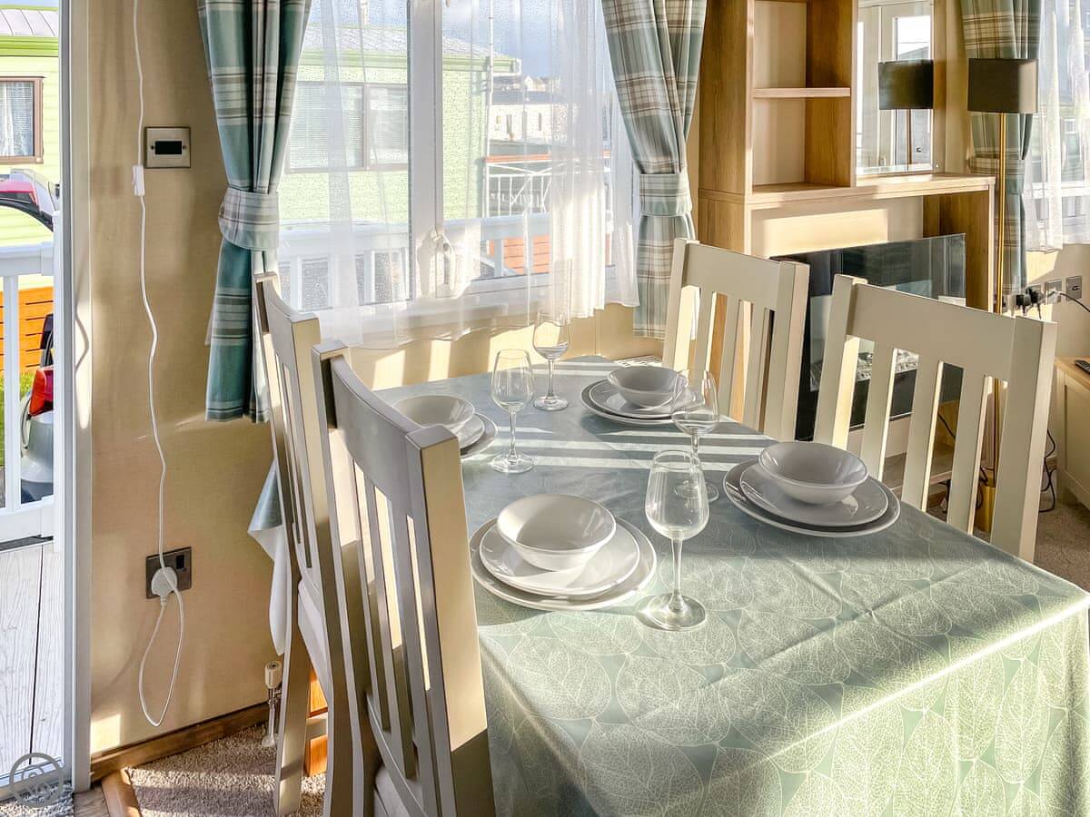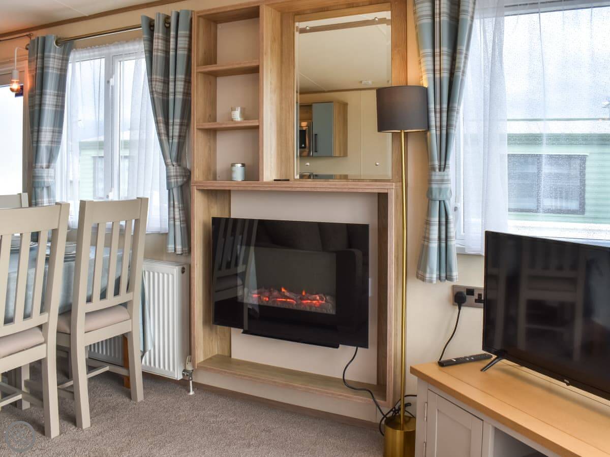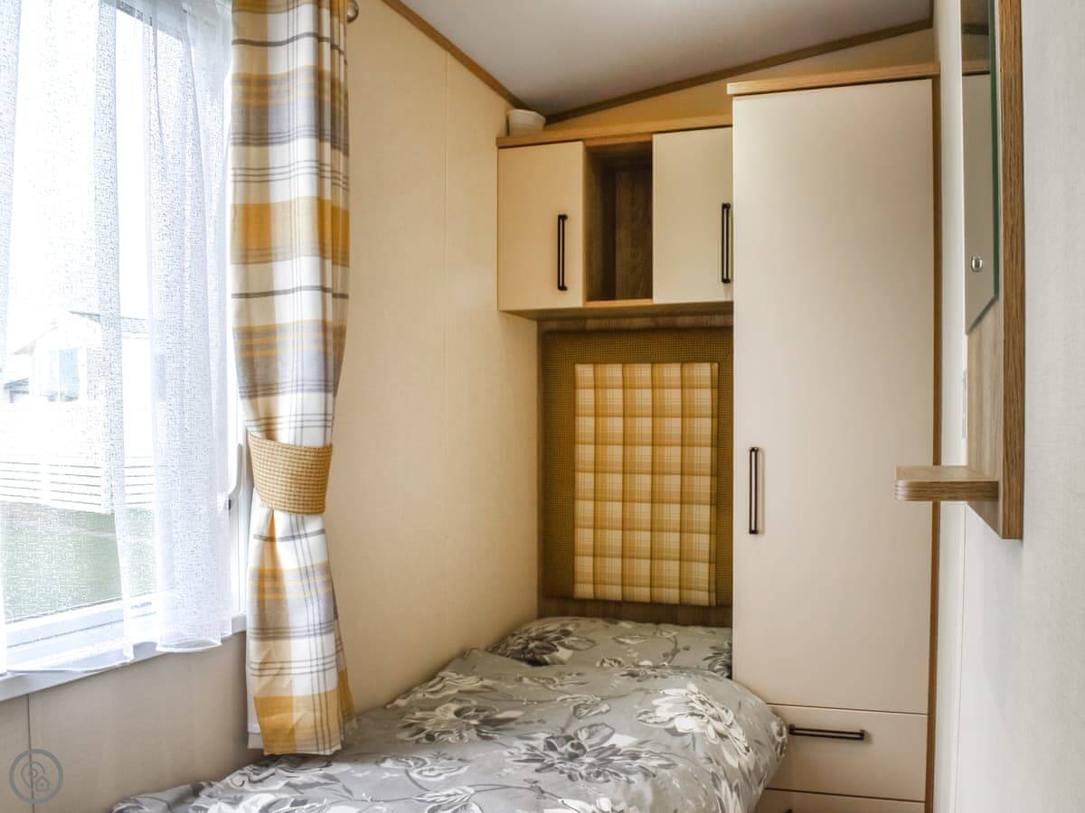 Facilities are what you'd expect. WiFi, TV, parking on the plot. All bedding and towels are included. There's no shed or extra storage, just what's inside. No pets.
