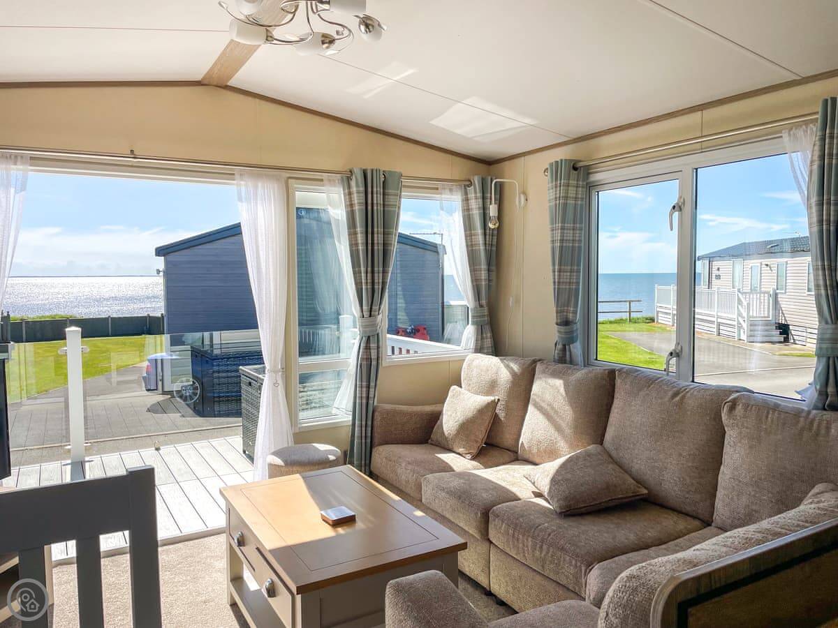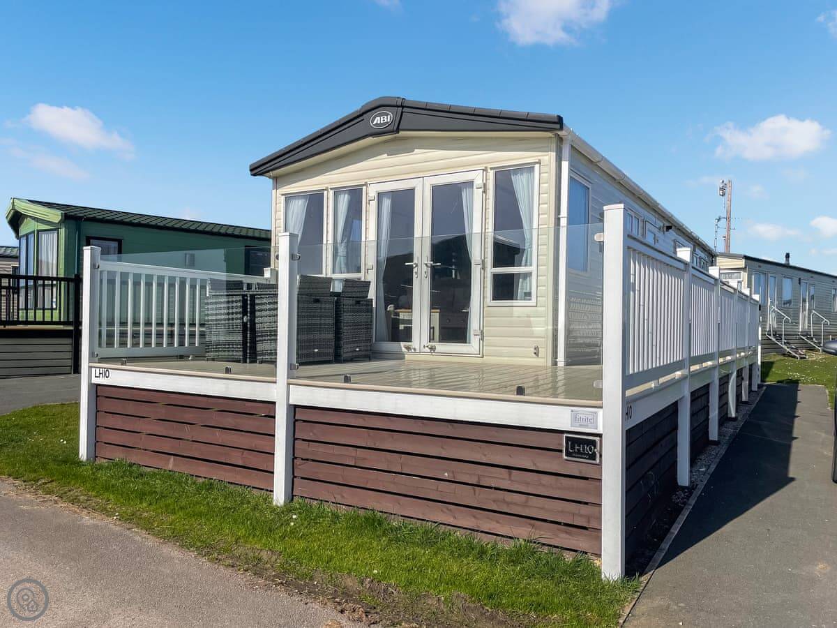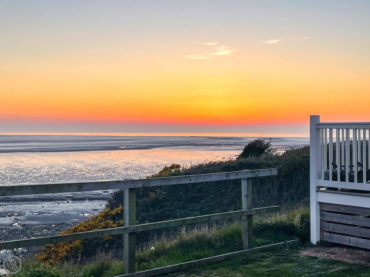Ocean View is a mobile home on the Ocean Edge Holiday Park in Heysham. It's not a cottage, it's a static caravan. It's modern and clean inside, and it's got a 4 Star rating. The main thing is the deck. It looks straight out over Morecambe Bay. The sunsets from there are really good.