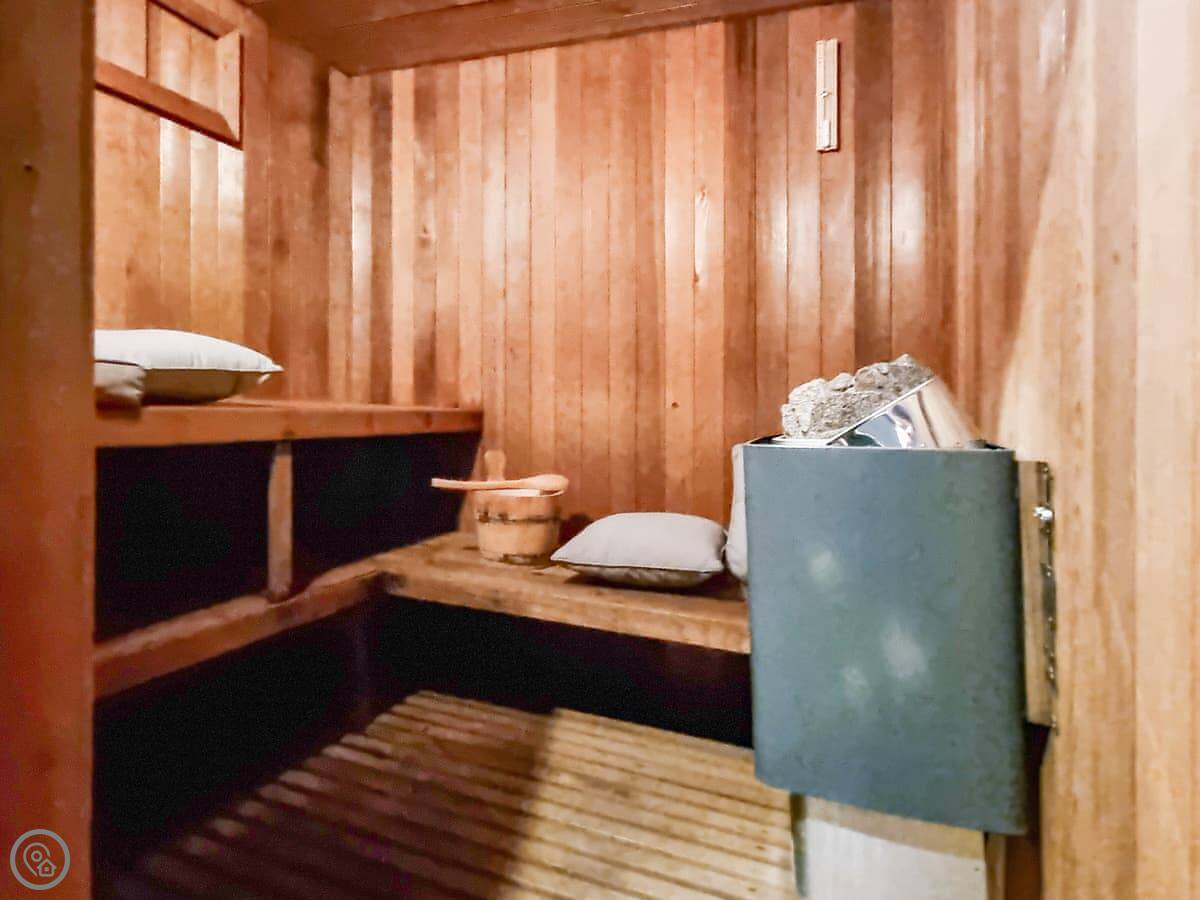 The main thing here is the indoor pool. It's in its own building attached to the house. There's also a sauna. And there's a separate room with a pool table and bookshelves, so you've got space to spread out.