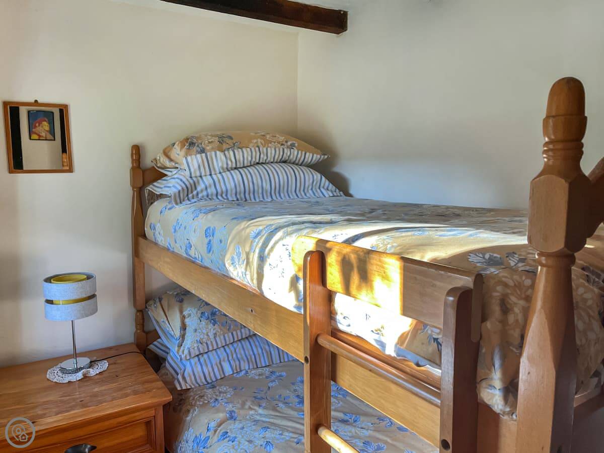 Mill Close Cottage is in Holymoorside, near Chesterfield. It's a ground-floor cottage, which is handy. It sleeps four in two bedrooms. One's a double, the other has bunk beds. There's one shower room.
